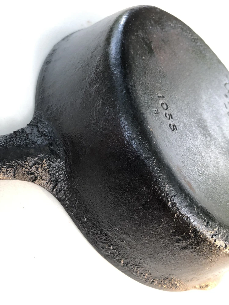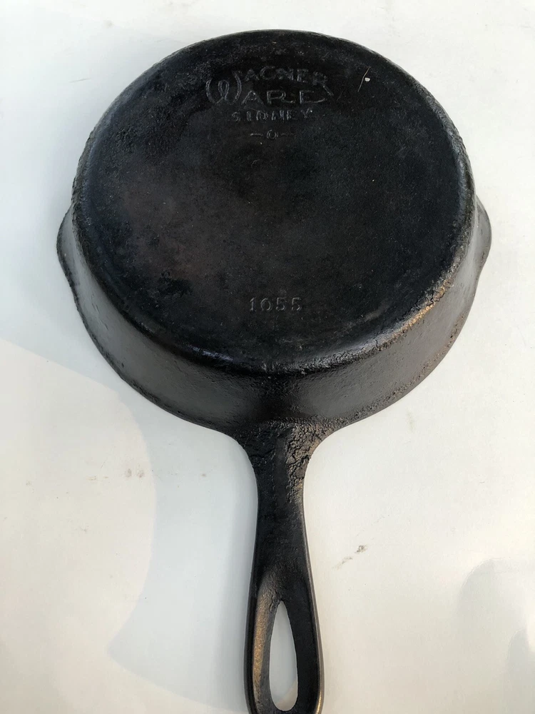 WAGNER WARE SIDNEY O 1055B CAST IRON SKILLET SITS FLAT. Condition is "Used". See photos.