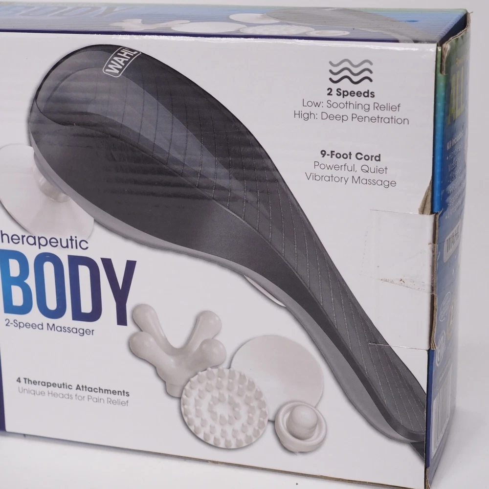 Power Source:Corded ElectricBrand:WahlMassage Functions:Pain Relief, Vibratinggtin13:043917412061Body Area:Full BodyNumber of Massage Heads:4Custom Bundle:NoUPC:043917412061Country/Region of Manufacture:ChinaType:Hand MassagerColor:Gray