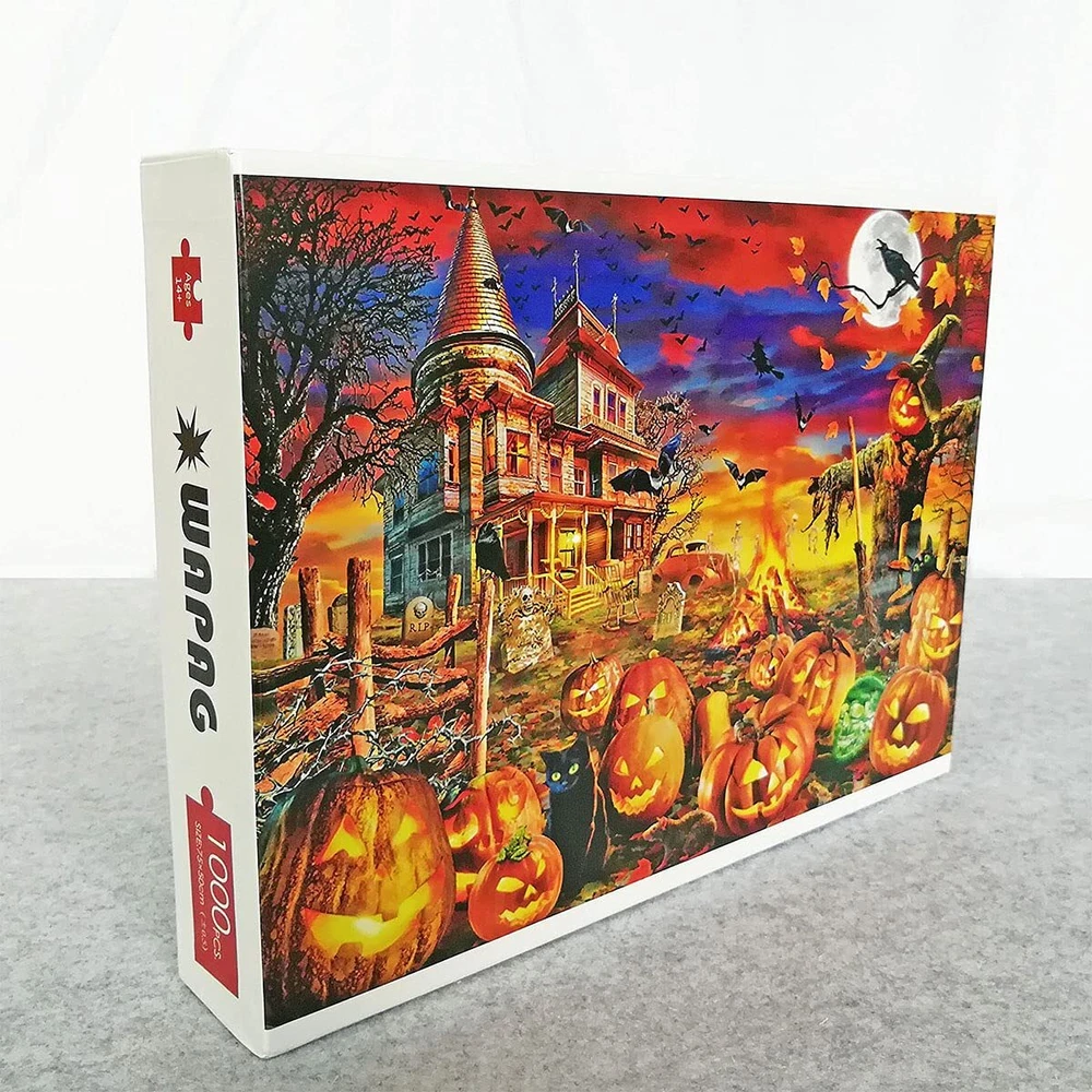 WAPAG Halloween Puzzles for Adults 1000 Piece, Wooden Jigsaw Puzzles 1000 Pieces for Adults Family Friends (Halloween Pumpkin) Package - Contains puzzles for Halloween adults 1000 piece, a poster and partition boards. High quality jigsaw puzzles. Finished size: 29.5" x 19.6" Indoor Fun - Most jigsaw puzzles 1000 pieces for adults are not only for fun, but also reinforce thinking, judgement and patience. Really fun to pass free time Perfect Gifts - The 1000 piece puzzles for adults are perfect as Halloween gifts, , Halloween decorations Easy to play - The jigsaw puzzles for adults have letters A-H in backside. You can sort the areas by letters. Then enjoy the puzzle time.The puzzles are perfect for adults. Recommend for age 14 and up Beautiful Halloween decorations - After finished, you could buy a frame to hang the 1000 piece puzzles up for decorating your living room, bedroom and other places Halloween 1000 pieces Jigsaw Puzzles for adults Shipping We offer FREE shipping on all orders! We ship within Three business days of payment, usually sooner. We use a selection of shipping services such as UPS, FedEx, USPS etc. We only ship to the lower 48 states, no APO/FPO addresses or PO Boxes allowed. Local pickups and combined shipping options are not provided at this time. Return You can return a product for up to 30 days from the date you purchased it. Any product you return must be in the same condition you received it and in the original packaging. Please keep the receipt. Payment We accept payment by any of the following methods: PayPal Please pay as soon as possible after winning an auction, as that will allow us to post your item to you sooner! Feedback Customer satisfaction is very important to us. If you have any problem with your order, please contact us and we will do our best to make you satisfied. Contact Us If you have any queries, please contact us via ebay. We usually respond within 24 hours on weekdays. Please visit our eBay store to check out other items for sale! Thank you for shopping at our store.