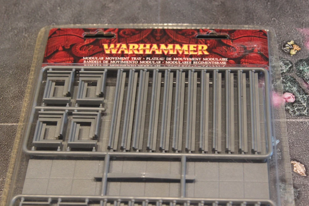 WARHAMMER FANTASY BATTLES THE OLD WORLD - OLD HAMMER Original Games Workshop movement trays from 2000's Holds variety of 20mm & 25mm based figures and mounted cavalry as shown in the photos. DIY KIT Comes with Two Base plates x1 25mm base 8x8 x1 20mm base 10x10 x16 corners x24 edge strips Can then be cut to sizes you need Parts supplied as per photos, blister pack has been cut open on reverse but contents are new and on Sprues I do combine P&P so wait or email for combined postage total, and mostly all postage is at cost See my other Vintage & Modern War Games , Board Games and Collectable Miniatures , Records from the 70's, 80's & 90's and Rare Retro Games.