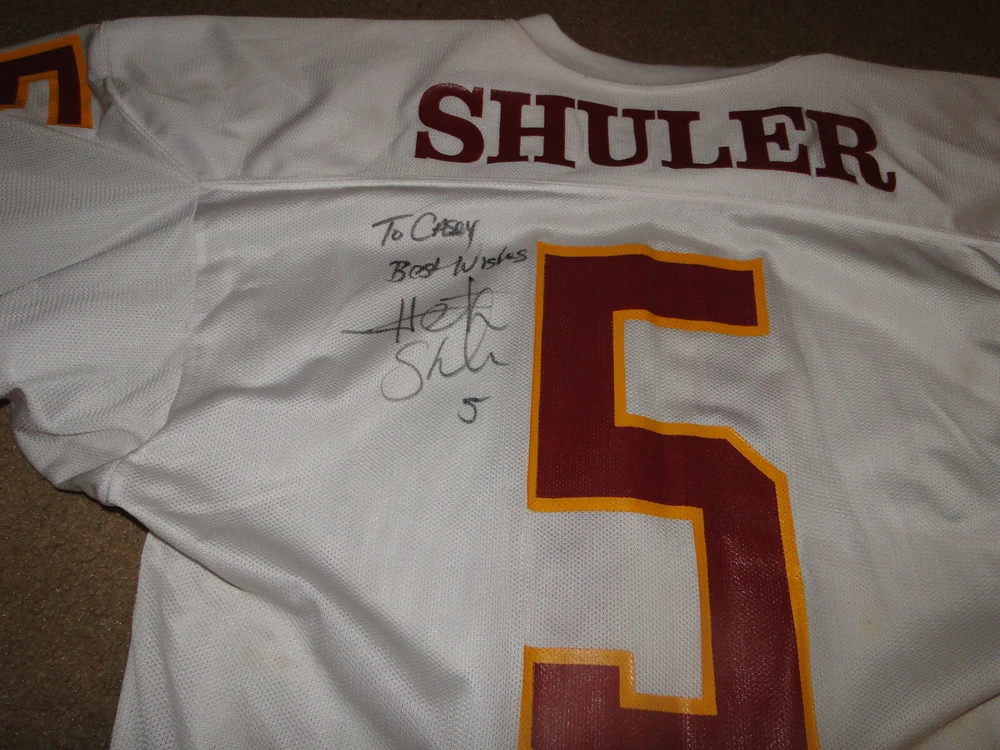 UP FOR AUCTION IS THIS NICE AUTOGRAPHED JERSEY BY SPORTS BELLE.THE WASHINGTON REDSKINS # 5 HEATH SHULER JERSEY.SIGNED ON THE BACK OF JERSEY.. AS PICTURED.. FROM A SMOKE AND PET FREE HOME..NICE JERSEY