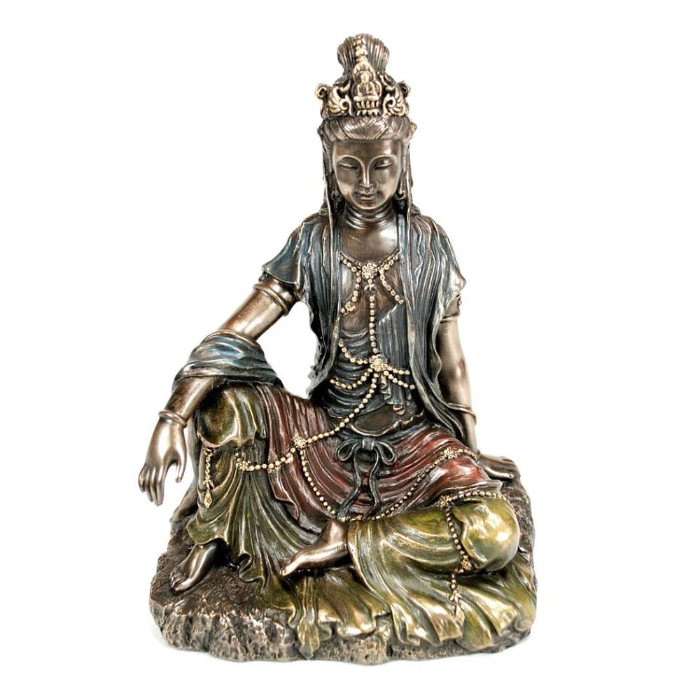 This beautiful statue of the Buddhist goddess, KWAN YIN is made from cold cast resin that is bronze plated. It is made with superior craftsmanship and has excellent details for its small size. Kwan Yin Pu Sa is the Buddhist Bodhisattva of compassion and mercy. She is beloved and worshiped in Buddhist communities worldwide for her unconditional love of humanity. Details Condition: Brand New Design: Water and Moon Kwan Yin Material: Cold Cast Resin with Bronze Plate Size: Approx. 5" x 3.5" x 2.75" Item Weight: Approx. 12 oz SEE OUR ENTIRE SELECTION OF QUALITY KWAN YIN STATUES IN THE 'KWAN YIN' SECTION OF OUR STORE. Water and Moon Kwan Yin Statue Water and Moon Kwan Yin Statue Click image to enlarge Description This beautiful statue of the Buddhist goddess Kwan Yin is made from cold cast resin that is bronze plated. It is a high quality statue made with superior craftsmanship and has excellent details . Kwan Yin Pu Sa is the Buddhist Bodhisattva of compassion and mercy. She is beloved and worshiped in Buddhist communities worldwide for her unconditional love of humanity. Details Condition: Brand New Design: Water and Moon Kwan Yin Material: Cold Cast Resin with Bronze Plate Size: Approx. 5" x 3.5" x 2.75" Item Weight: Approx. 12 oz SEE OUR ENTIRE SELECTION OF QUALITY KWAN YIN STATUES IN THE KWAN YIN SECTION OF OUR STORE. Shipping Domestic shipping costs calculated to location. International Buyers International shipping charges are calculated to location in the 'Shipping and Payments' tab near the top of this page. Import duties, taxes, and charges are not included in the item price or shipping cost. These charges are the buyer's responsibility. Please check with your country's customs office to determine what these additional costs will be prior to bidding or buying. 'International First Class Mail' can take up to 6 business weeks for delivery depending on destination country, destination customs, and local or origin peak holiday shipping season. Faster 'International Priority Mail' shipping options are also available at checkout for most items. About Us The Tiny Dragon is a U.S. owned and operated 'e-retail' company. Our mission is to provide unique and affordable items of quality, promptly delivered to your complete satisfaction. Our items are shipped directly to you from our headquarters in beautiful Portland, Oregon USA. View our entire inventory at: At 'The Tiny Dragon' you are a valued customer and it is always our pleasure to serve you.