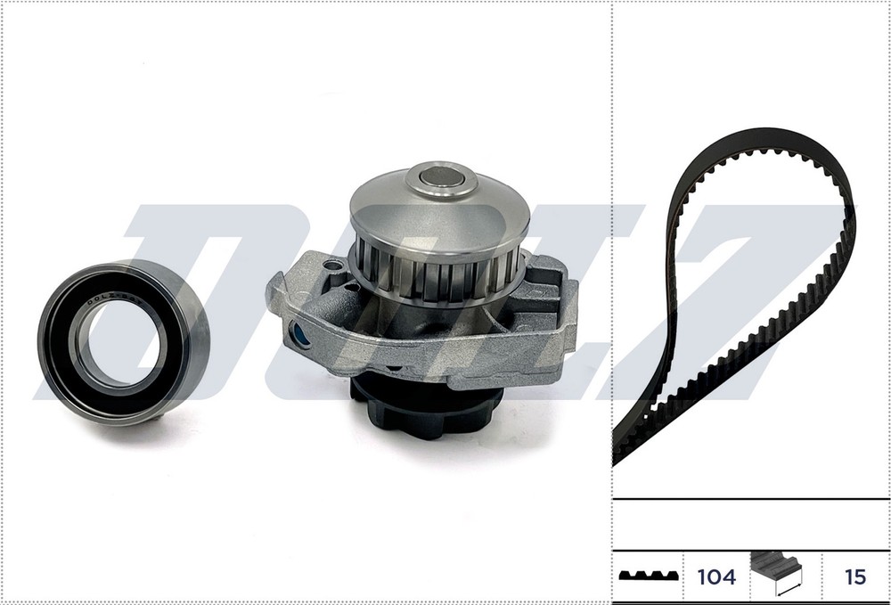 Contac Us Visit Shop WATER PUMP & TIMING BELT KIT KD129 FOR FIAT TIPO UNO PUNTO/Van PANDA/Hatchback Description Manufacturer Part Number KD129 Number of Teeth 104 Width [mm] 15,0 Number of belts 1 Weight [kg] 1,44 for article number S161 Components 05KD091 Number of Teeth 104 Width [mm] 15,0 for article number KD129 Quantity 1 06KD016 Diameter [mm] 57,0 Width [mm] 24,0 Overall Height [mm] 24,0 for article number KD022/KD088/KD091/KD Quantity 1 Aftermarket Reference Brand Reference GATES KP15030FI DAYCO KTBWP3040 SKF VKMC02200 QUINTON HAZELL QBPK1580 GRAF KP2861 KWP KW286-1 Schaeffler INA 530000930 BREDA LORETT KPA0071A HEPU PK00944 GGT KPA20129 Vehicle List Make Model Vehicle Year From Year To Capacity(CC) FIAT PANDA (141_) 750 1986-01 2003-10 769 FIAT PANDA (141_) 1000 4x4 1986-01 1989-07 999 FIAT PANDA (141_) 1000 4x4 1986-01 1992-12 999 FIAT PANDA (141_) 1000 1986-01 1992-04 999 FIAT PANDA (141_) 1000 4x4 1986-05 1994-12 999 FIAT PANDA (141_) 1000 i.e. Cat 1987-10 1998-08 999 FIAT PANDA (141_) 1100 Trekking 4x4 1991-10 2004-07 1108 FIAT PANDA (141_) 1100 1991-05 1999-12 1108 FIAT PANDA Hatchback Van (141_) 750 1986-01 1992-07 764 FIAT PANDA Hatchback Van (141_) 1000 1986-01 1992-02 999 FIAT UNO (146_) 45 1.0 (146A.ED) 1986-06 1993-12 999 LANCIA Y10 (156_) 1.0 Fire (156B, 156AD) 1985-06 1991-06 999 LANCIA Y10 (156_) 1.0 Fire Catalytic-Conv (156AE) 1987-10 1992-02 999 LANCIA Y10 (156_) 1.1 i.e. Fire (156AG) 1989-07 1995-09 1108 FIAT UNO (146_) 50 i.e. 1.1 1992-06 1993-12 1116 LANCIA Y10 (156_) 1.1 i.e. Fire All-wheel Drive (156AG) 1992-09 1995-12 1108 FIAT PUNTO (176_) 55 1.1 1993-09 1999-09 1108 FIAT PANDA (141_) 1100 1995-02 2003-09 1108 FIAT PANDA (141_) 1100 4x4 1995-02 2004-07 1108 LANCIA Y10 (156_) 1.1 Fire (156AG) 1995-01 1995-12 1108 LANCIA Y10 (156_) 1.1 Fire All-wheel Drive (156AG) 1995-01 1995-12 1108 FIAT TIPO (160_) 1.1 (160.AA) 1988-01 1991-10 1108 FIAT PANDA (141_) 1000 1985-01 1992-12 999 LANCIA Y10 (156_) 1.0 Fire (156AA, 156AD) 1985-03 1990-02 999 FIAT UNO (146_) 50 1.1 1990-01 1993-12 1108 FIAT PUNTO Van (176_) 1.1 1996-04 2000-02 1108 LANCIA Y (840_) 1.1 (840AE) 1995-11 2003-09 1108 FIAT UNO (146_) 45 i.e. 1.0 (146E, 146A) 1984-10 1995-10 999 FIAT PANDA Hatchback Van (141_) 1000 i.e 1992-08 2004-02 999 FIAT UNO (146_) 60 1.1 1989-04 1992-12 1108 LANCIA Y10 (156_) 1.1 i.e Fire (156AC) 1989-08 1992-06 1108 LANCIA Y10 (156_) 1.1 i.e Fire All-wheel Drive (156AC) 1989-08 1992-06 1108 LANCIA Y10 (156_) 1.0 Fire (156AA) 1985-03 1989-06 999 AUTOBIANCHI Y10 1.0 1985-03 1995-10 999 AUTOBIANCHI Y10 1.0 4WD 1986-12 1995-10 999 AUTOBIANCHI Y10 1.0 Cat 1987-10 1995-10 999 AUTOBIANCHI Y10 1.1 1989-06 1995-10 1108 AUTOBIANCHI Y10 1.1 4WD 1989-06 1995-10 1108 AUTOBIANCHI Y10 1.1 i.e. Cat 1990-09 1995-10 1108 FIAT PANDA (141_) 750 1986-01 2003-10 770 FIAT UNO (146_, 158_) 45 1.0 (146A.ED) 1986-06 1993-12 999 FIAT UNO (146_, 158_) 50 i.e. 1.1 1992-06 1993-12 1116 FIAT UNO (146_, 158_) 50 1.1 1990-01 1993-12 1108 FIAT UNO (146_, 158_) 60 1.1 1989-04 1992-12 1108 FIAT UNO (146_, 158_) 45 i.e. 1.0 (146E, 146A) 1984-10 1995-10 999