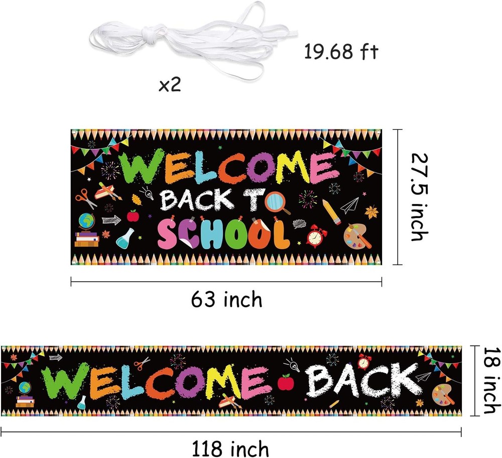 Free eBay listing template designed by dewiso.com WATINC 2pcs Welcome Back to School Backdrop Banner, Extra Large First Day of School Photography Background for Back to School Party Decorations Supplies, Indoor Outdoor Photo Props Classroom Decor FREE AND FAST SHIPPING! About this item MATERIAL: These welcome back to school backdrop banners are made of durable fabric, which are reusable and foldable after use for many times! EXTRA LARGE SIZE: Package includes 1*" Welcome Back to School" Banner (63" x 27.5"); 1*" Welcome Back" Banner (118"×18"); 2*ropes for hanging (19.68ft); they’re both extra large, eye-catching and will be beautiful decorations for back to school party. EASY TO USE: Package comes with 2 ropes, you can cut each into 4 parts and attach through 4 holes and then hang indoors and outdoors, on the wall, window, blackboard, classroom, garden, doorway, teacher office, school yard, etc. EXQUISITE PATTERN: The backdrop banners are printed with exquisite colorful book, pen, alarm clock and other school supplies patterns, which will attract people's attention and add special back to school atmosphere for teachers and students! WIDE APPLICATION: Suitable for welcome back to school party decorations, first day of school party supplies, classroom decorations, teacher office decorations, photo booth props backdrop, etc. Product We offer a 30-Day Return Policy on items which you are not completely satisfied with. You have the option for a full-refund or an exchange of the item. No returns are available on items shipped outside of the US . Shipping We offer Free Shipping to the US and ship within 2 business days of payment, usually sooner. We use UPS express shipping. That's why your products are usually delivered within 3 days . Contact We try our very best to make sure every customer is completely satisfied. If there's a problem , message us! We're happy to help. 24/7 live chat available.