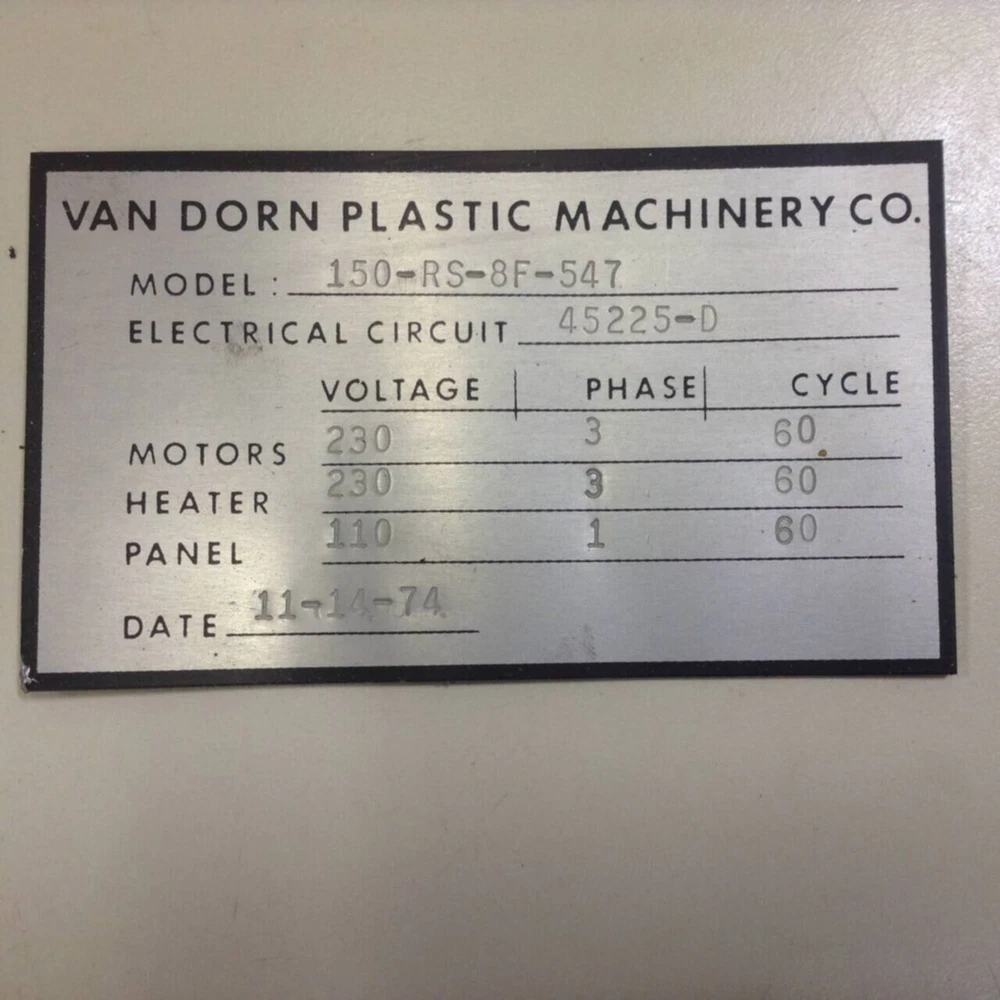 Amperage: 18 Amps @ 50°C Voltage: 277-600 VAC, 50/60 Hz Dimensions: 4 3/4 x 3 3/4 x 3 1/4 Weight: 1 lbs Removed from: 150 Ton Van Dorn Injection Molding Machine Model: 150-RS-8F Serial: 547 Year: 1974 Expedited shipping services are available This piece is located at Ideal Machinery, Inc. on our showroom floor. Located at: 10230 N. Holly Rd, Holly MI 48442 Please feel free to contact us with any questions. SHIPPING SERVICES Expedited shipping services are available upon request. We attempt to honor all "same day" and "overnight" shipping requests if they are submitted by 2:30 PM EST, Monday through Friday. WARRANTY All items have a 30 day warranty. This does not include items sold "as is" or "as parts". It does not include manuals or printed materials. Items must be returned in the same condition as purchased. Removing or tampering with our security seals will automatically void the warranty. RETURN POLICY In the unlikely event that your purchase does not turn out as expected, please contact us for an RMA number, as well as return instructions. FREIGHT POLICY Feel free to contact us for a shipping price on freight items before you buy. Related Ideal Reference Numbers: 86840