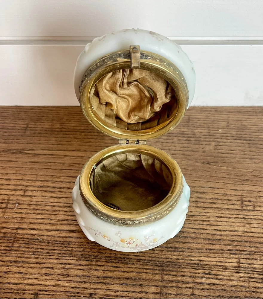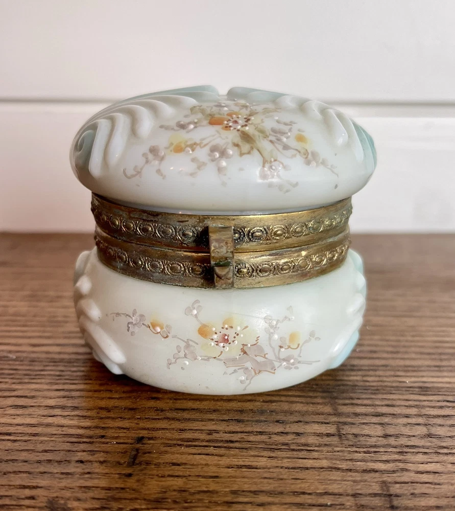 WAVECREST- Antique Victorian Dresser Box-Hand Painted with Original Silk Lining-Signed Absolutely beautiful condition! 3.5" round x 2 3/8" tall...signed on bottom