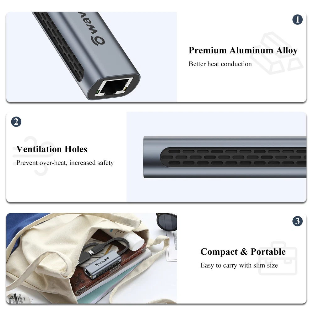 5Gbps WAVLINK USB C to Ethernet Adapter 5Gbps, Driver-free RJ45 Gigabit Ethernet Network Adapter for Laptops, Computers and More, Grey Aluminum Case for Windows 10/11, Mac OS 11 or Later, Linux and More [Enhanced Wired Connectivity up to 5G Speeds] Unlock unmatched reliability with speeds reaching up to an impressive 5000Mbps, ensuring seamless data transmission. Compliant with IEEE standards such as 802.3u (10/100Mbps), 802.3ab (1000Mbps), and 802.3bz (2500/5000Mbps), this device guarantees optimal performance for various network demands. [Versatile USB-C 10Gbps Interface] Experience unparalleled connectivity with a USB-C interface that adheres to the latest USB Spec 3.2 standards, providing lightning-fast data transfer speeds of up to 10Gbps. Whether for large file transfers or demanding applications, this feature ensures efficient data exchange for all your connectivity needs. [Advanced Remote Wake-up Functionality] Empower remote functionality with support for Microsoft Wake Packet Detection (WPD), 'Wake-On-Lan,' and 'RealWoW' features. Seamlessly wake up slumbering PCs over the internet, offering convenience and accessibility like never before, enhancing productivity and efficiency across various settings. [Sleek and Lightweight Design] Crafted with a focus on convenience, the compact and lightweight design of this device optimizes space utilization in homes, offices, or on-the-go scenarios. Easy to carry and integrate, it ensures versatility without compromising on performance, catering to dynamic connectivity requirements effortlessly. [Robust Construction for Longevity] Engineered with premium aluminum alloy shell and internal heat dissipation design, this device assures durability and stability for prolonged usage. The sturdy build not only enhances longevity but also guarantees consistent performance, making it a reliable companion for sustained connectivity needs. Cutting-Edge Connectivity: Experience lightning-fast network speeds with a single RJ45 Ethernet port supporting up to 5000Mbps, meeting IEEE standards like 802.3u (10/100Mbps), 802.3ab (1000Mbps), and 802.3bz (2500/5000Mbps).Coupled with a USB-C port compliant with USB Spec 3.2 for 10Gbps transfer rates, this device ensures seamless networking and data transfers. Enhanced Remote Wake-Up Capabilities: Integrate Microsoft Wake Packet Detection for advanced remote wake-up features like 'Wake-On-Lan' and 'RealWoW.' Boosting efficiency and reliability, this combo enhances global accessibility with versatile options. Experience flexibility and greater control when activating devices remotely. Portable Efficiency: Crafted to be compact and lightweight, this device is optimized for saving space effortlessly, whether at home, in the office, or on-the-go. Its sleek design ensures maximum portability without compromising functionality, making it an ideal companion for those who value efficiency in every setting. Note: 1. To achieve the optimal network speed please make sure the USB port connected speed is 10Gbps; When the USB port speed is 5Gbps, the maximum Ethernet speed is around 3.3Gbps. 2. The default speed for MAC OS is 5Gbps, manually selecting the highest speed should be at 2.5Gbps; This issue is related to the MAC OS driver and manual settings are not recommended. 3. There are speed differences on MacBook. * M3 chip. Dual direction maximum speed can reach 4.6Gbps. * M1 chip. Dual direction Transmit/Receive. One direction can reach 4Gbps, the other 2.5Gbps. Single direction maximum speed can reach 4.7Gbps. * 2017 Intel i7 chip. Dual direction Transmit/Receive. One direction can reach 3.1Gbps, the other 1.3Gbps. Single direction maximum speed can reach 4.7Gbps. * 2017 Intel i5 chip. Dual direction Transmit/Receive. One direction can reach 2.9Gbps, the other 900Mbps. Single direction maximum speed can reach 3.8Gbps. 4. The speed are related to the computer CPU performance. Because this Ethernet adapter will consume computer's CPU resources. On Surface Laptop Go(CPU i5-1035G1)Win11 OS will have same issue. Dual direction Transmit/Receive. One direction can reach 4.7Gbps, the other 623Mbps. resulting in CPU usage at 100%. Realtek will provide the minimum configuration requirements soon. If the above issue would made a negative impact on your user experience, please purchase with caution. Specifications: Model: WL-NWU340G Color: Grey Material: Alumimum Alloy Product Dimensions: 8x3.2x1.7cm/3.15x1.26x0.67in Cable Length: 15cm/5.91in Ports: 1x USB-C compliant with USB3.2,1x RJ45 10/100/1000Mbps/2.5G/5Gbps Ethernet LED Indicator Blinking Green: Auto-recognition and transferring at 5000 Mbps speeds. LED Indicator Blinking Amber: Auto-recognition and transferring at 10/100/1000/2500Mbps speeds. System Requirement: Windows/MacOS/Linux/Chrome OS Compatibility: Compatible: Windows, macOS, Linux, and Chrome OS, USB-C (5Gbps), USB 3.0, and Thunderbolt 3 Systems, Microsoft Windows 10, 8.x, 7, Vista and XP, macOS 10.6 and above, iPadOS Compatible: Linux kernel 3.2 and above (basic support, install driver or update to 5.x kernel for full support), Supported on up-to-date Chrome OS systems Compatible: Plug and play for Windows 10, Mac OS 10.13.6 to 11.x, iPadOS, Linux Kernel 5.x and above, up-to-date Chrome OS. Not Compatible: ARM-based Windows RT and Windows Mobile, Nintendo Switch, Most Android devices, TiVo Series 2, Wii, or other non-PC/Mac platforms, Not recommended for use with FreeBSD or pfSense Note: 1.For 5 Gigabit network performance, use Cat 6 Ethernet cable or higher, ensure your internet plan supports 5G, and that your Modem, Switch, or Router also support 5G output. Additionally, ensure your PC's C port supports 5G or above for faster transmission speeds. 2.Plug and play (driver-free) functionality automatically installs drivers on Windows systems. For Mac and Linux, the system comes with built-in drivers for seamless plug-and-play capabilities without the need for manual installations.For older systems, please download and 