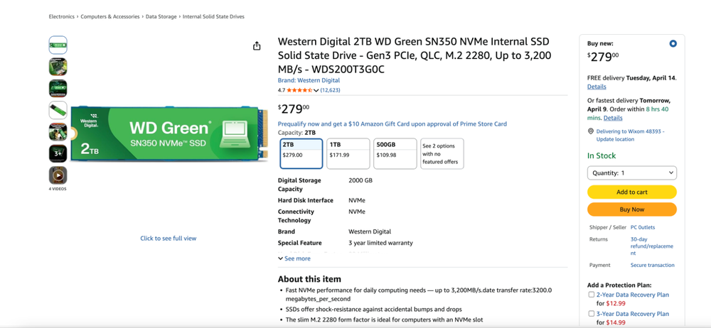 Prices on NVMe drives are stupidly high right now, but this one had a fair price on it and the listed wear level was reasonable. Shipping was fast, the description accurate, and I have a boot drive now. Thanks!