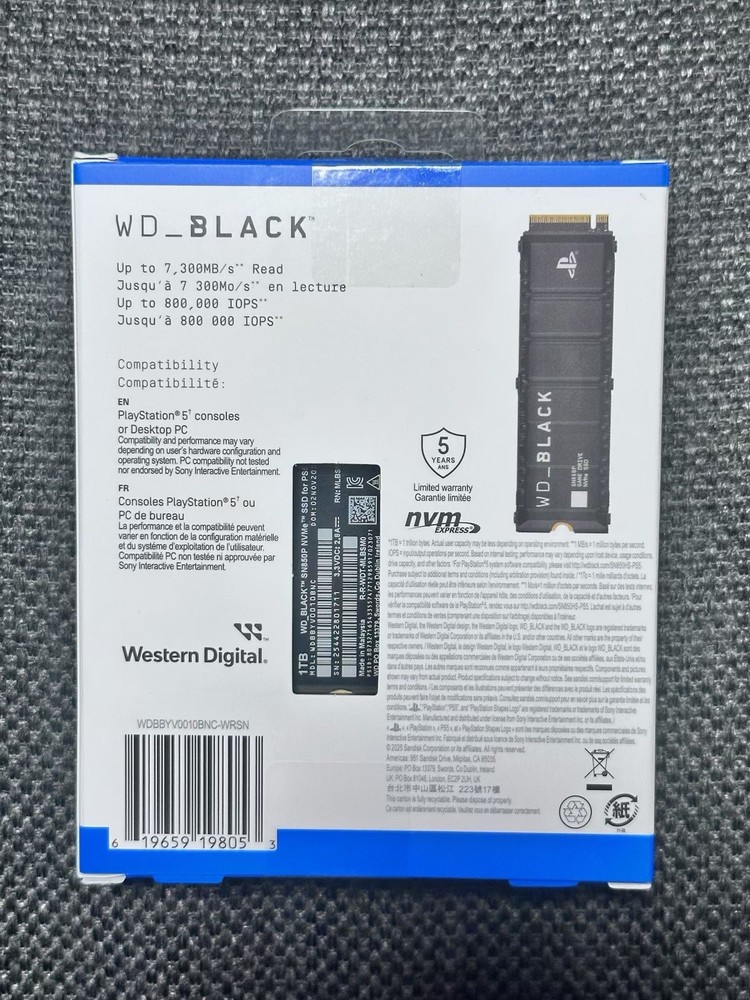 Title: WD_BLACK SN850P 2TB NVMe SSD w/ Heatsink – Brand New – PS5 & Desktop PC – 7300MB/s ⸻ Condition: Brand New / Factory Sealed ⸻ Description: This is a brand new, factory-sealed WD_BLACK SN850P 2TB NVMe SSD with Heatsink, officially licensed for PlayStation 5 and fully compatible with desktop PCs that support PCIe Gen4 M.2 NVMe drives. Built for next-gen performance, it delivers ultra-fast speeds and reliable cooling thanks to the pre-installed heatsink, making it ideal for gaming PCs and PS5 storage expansion. ✔ Brand new & unopened ✔ Works with PS5 and desktop PC ✔ Official PlayStation licensed product ✔ Built-in heatsink (no extra cooling needed) ✔ Up to 7,300 MB/s read speeds ✔ PCIe Gen4 NVMe M.2 interface ⸻ Specifications: • Brand: Western Digital (WD_BLACK) • Model: SN850P • Capacity: 2TB • Interface: PCIe Gen4 NVMe M.2 • Read Speed: Up to 7,300 MB/s • Heatsink: Yes (pre-installed) • Compatibility: • PlayStation 5 • Desktop PCs with M.2 PCIe Gen4 slot ⸻ What’s Included: • WD_BLACK SN850P 2TB NVMe SSD with Heatsink • Original sealed retail packaging