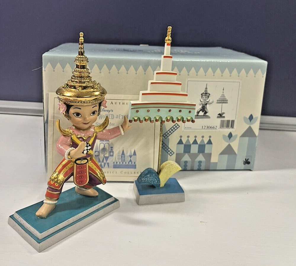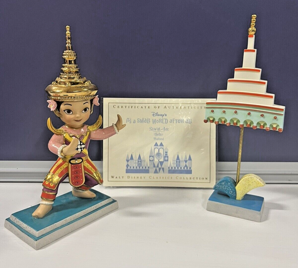 The product is a WDCC Disney Classic figurine from the "It's a Small World" collection, featuring the Thailand Sawat Dee design. It comes with a Certificate of Authenticity (COA) and is part of the Disney franchise. Please note that I am not a professional, so the condition stated is my opinion which can be different then the next persons. Please see all the photos to determine visual condition for yourself as well. If you have any questions, please don’t hesitate to ask. All antique/vintage items may have signs of wear, shelf dust, odor, an aged patina and/or needed repair, etc. I do my best to note and photograph and damages I see on every item listed. All items are sold as found; I leave it up to the buyer to make any repairs or cleaning. All items are sold AS IS. Thank you for looking!