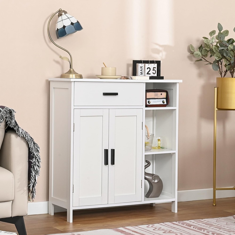 Find The Secret To A Fresh Life - scientific design, greatly improving space utilization. Pairing door with 3 shelves, this storage cabinet provides display and storage functions for your various items, such as daily necessities, tableware, medicines, etc, these personal effects can place by category. You can sit back relax and know that everything is within your reach Perfect To Help Personalize Your Life - decorate Your Time, it’s Worth. The drawer, doors and opening shelves combination enriches the visual level, which not only effectively blocks dust, but also turns storage into a display art. The floor storage cabinet with shelves which has 3 adjustable heights can bigger and higher things Follow Your Choose - one choice, more possibilities. This floor storage cabinet is designed for various places - home office, living room, kitchen, entryway, restroom. It can also be used as display shelf or file cabinets Quality Is Not Discounted - protect your family from possible dangers. Buffet cabinet made of durable natural particle board which promises a long lifespan. Environmentally friendly lacquered surface ensures no harm and easier to clean Don't Worry About Assembly - easy as pie. All parts were marked with letters and just need to follow the instructions in the manual, you will be happy to get this fashionable storage cabinet. Size: 29.5”L*11.8”W*31.6”H, weight: 37.4LBS