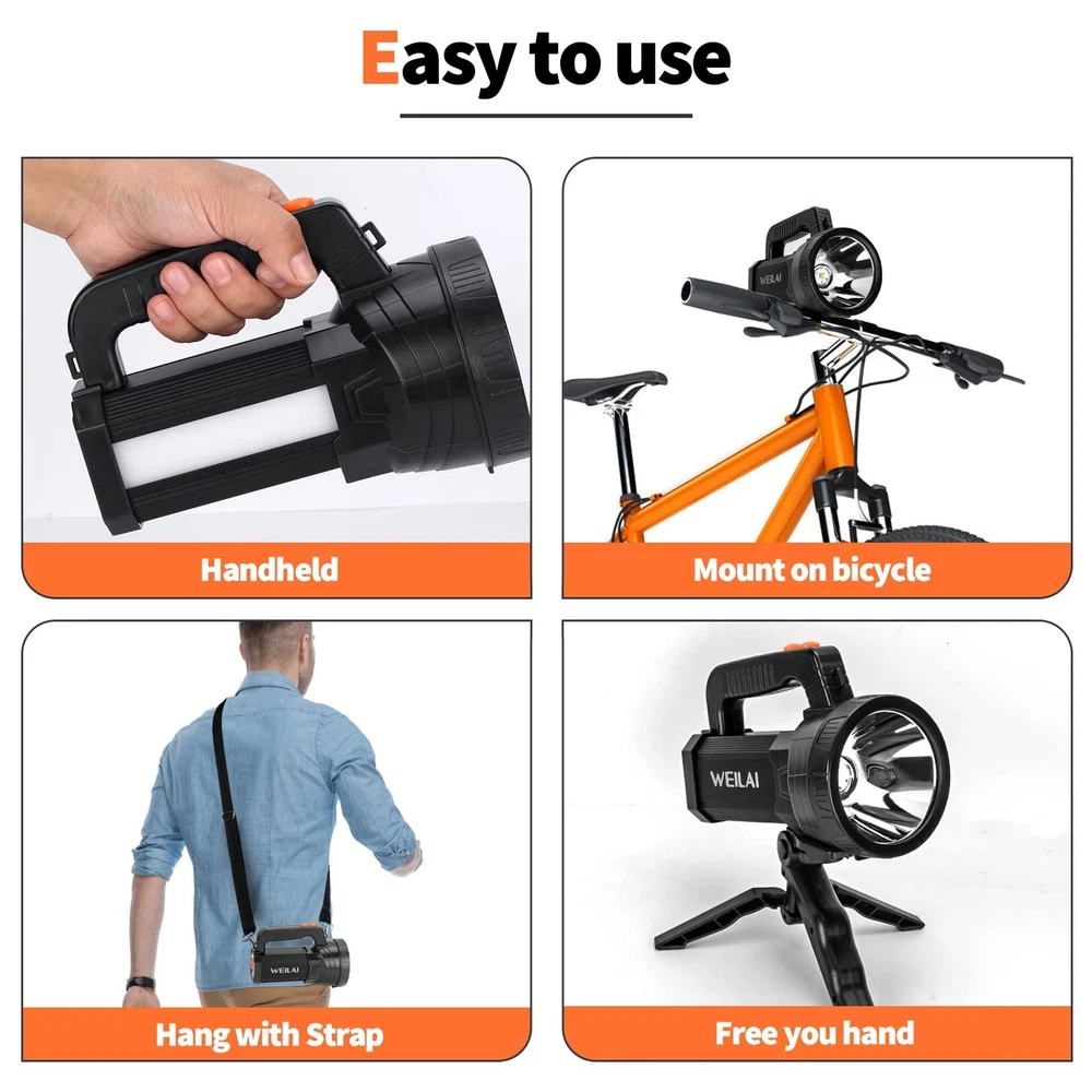This spotlight is a game-changer! The brightness is insane—perfect for camping, emergencies, or late-night projects. The USB rechargeable battery lasts forever, and it’s super sturdy. Super easy to use, lightweight, and worth every penny. A must-have for anyone who needs reliable, powerful light!