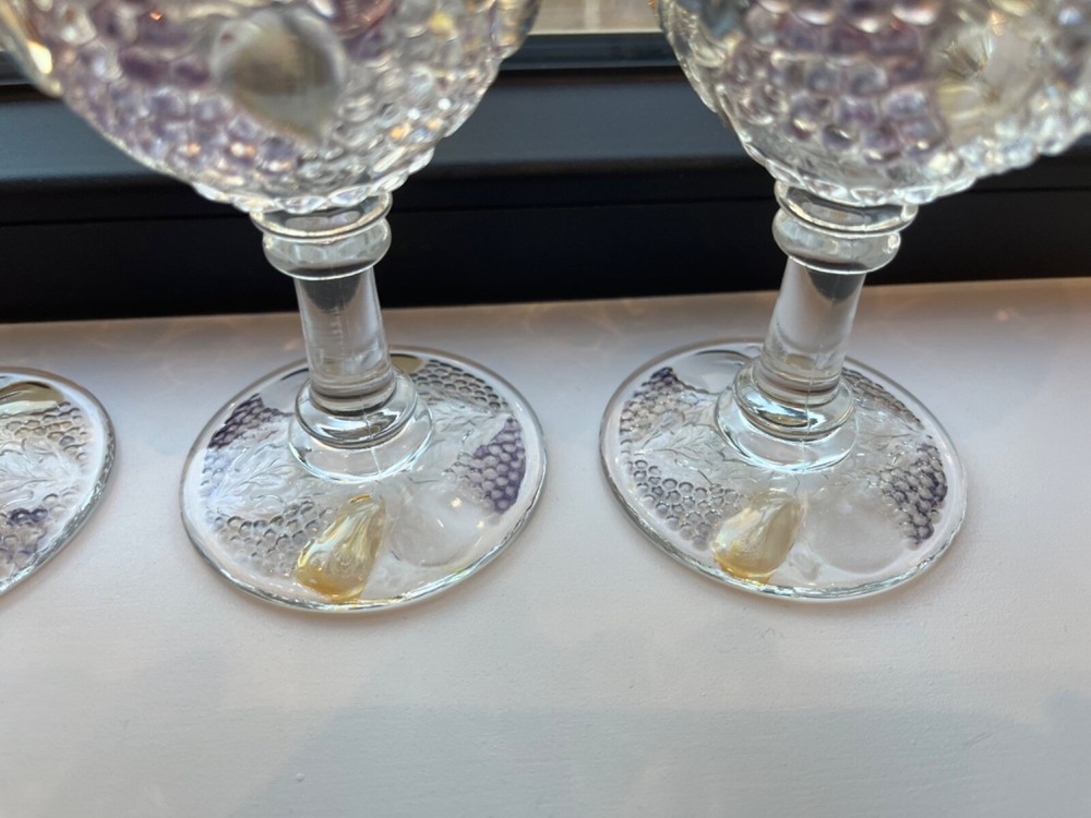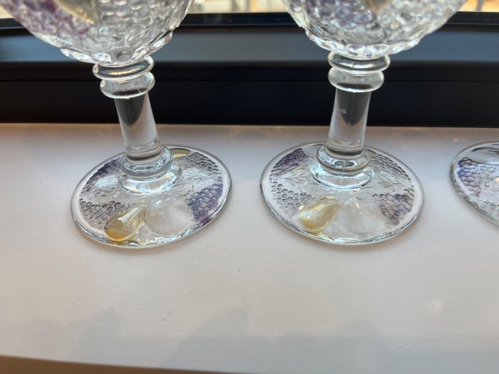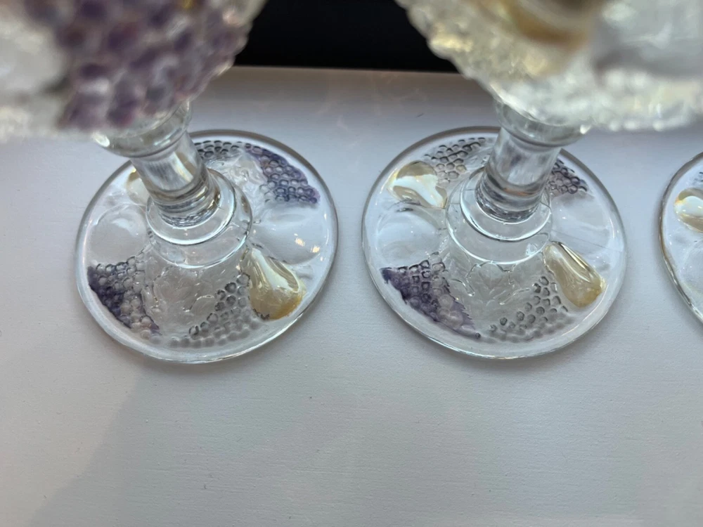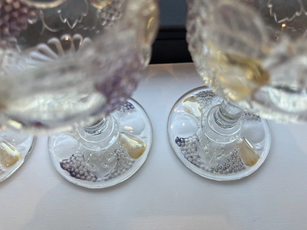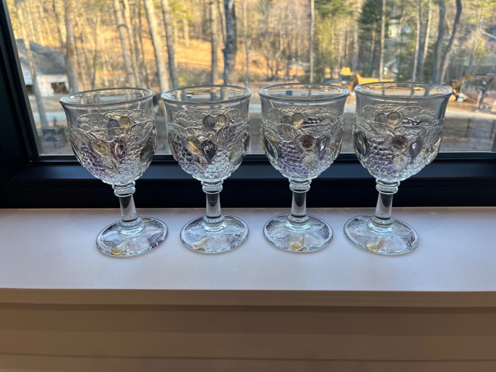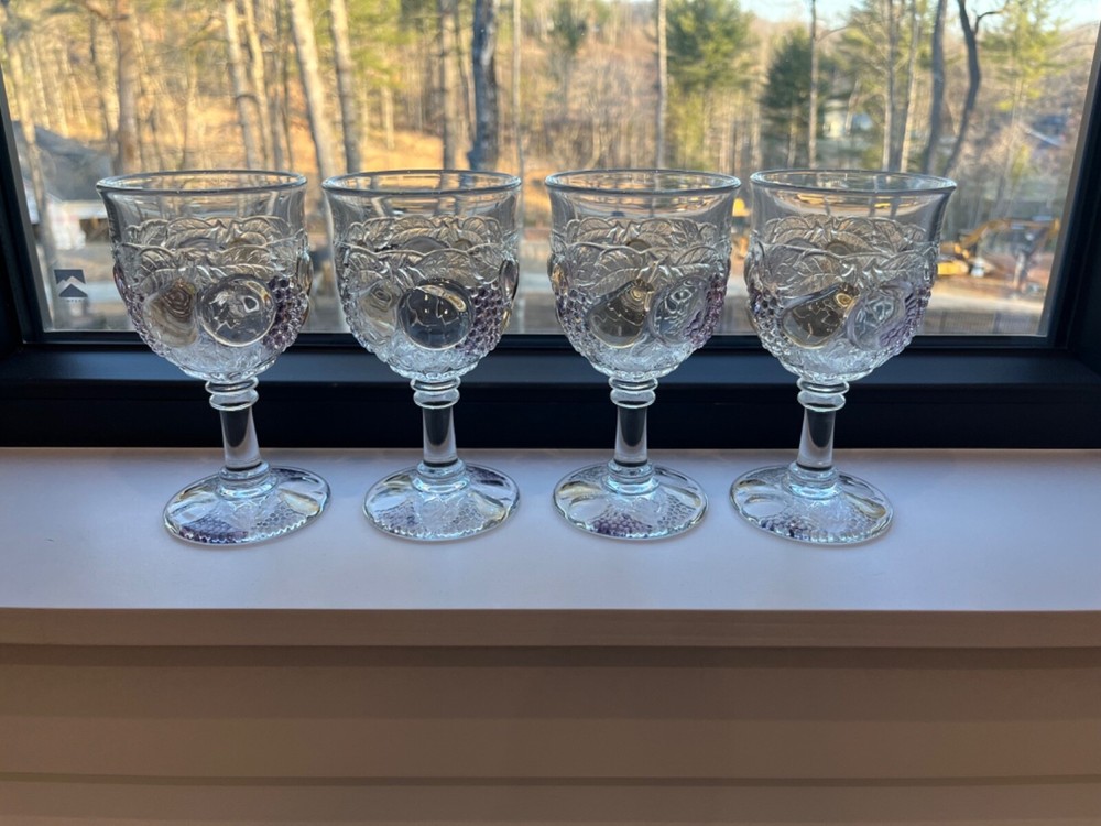 DESCRIPTION : Set of 4 Westmorland Della Robbia 8oz stemmed goblets. Lovely fruit design with pastel flashing. CONDITION : No chips or cracks. Some fading to the colored flashing. SIZE : Approximately 6” tall x 3.25” diameter bowl OTHER : Please enlarge and inspect the photos as they are important part of the listing. Just ask if you have questions or would like additional photos. Shipping costs reflect eBay discounted rates which I am happy to pass on to buyers. I do not add on handling fees or other charges so that your cost to ship is as low as possible. Sorry, no returns.