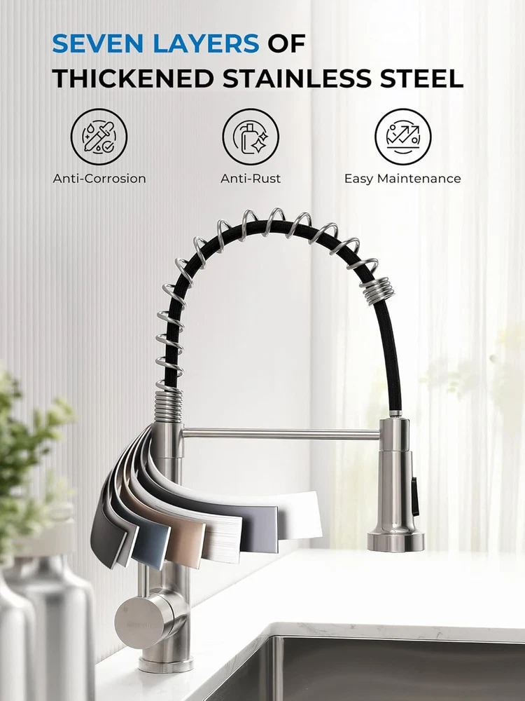 WEWE Brushed Nickel Pull-Down Kitchen Sink Faucet with 2 Spray Modes