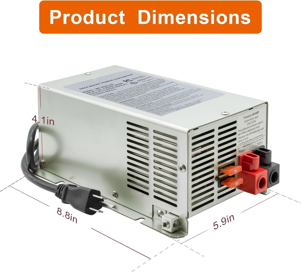 The 9800 series converter/charger is a highly adaptable and advanced power solution. The 9845 / 55 model provides a clean and reliable ampere DC power supply, making it an ideal choice for supplying power to electronic products and appliances. The 9800 series provides clean power even without battery filtration. As the cooling fan only operates when needed, it ensures quiet operation. Automatic three-level battery charging maintains battery life through three nominal voltage output modes: 13.2 VDC "floating" mode, 13.6 VDC "absorption" mode, and 14.4 VDC "high capacity" charging mode. Electronic current limiting automatically shuts off the power supply under overload or short circuit conditions.
