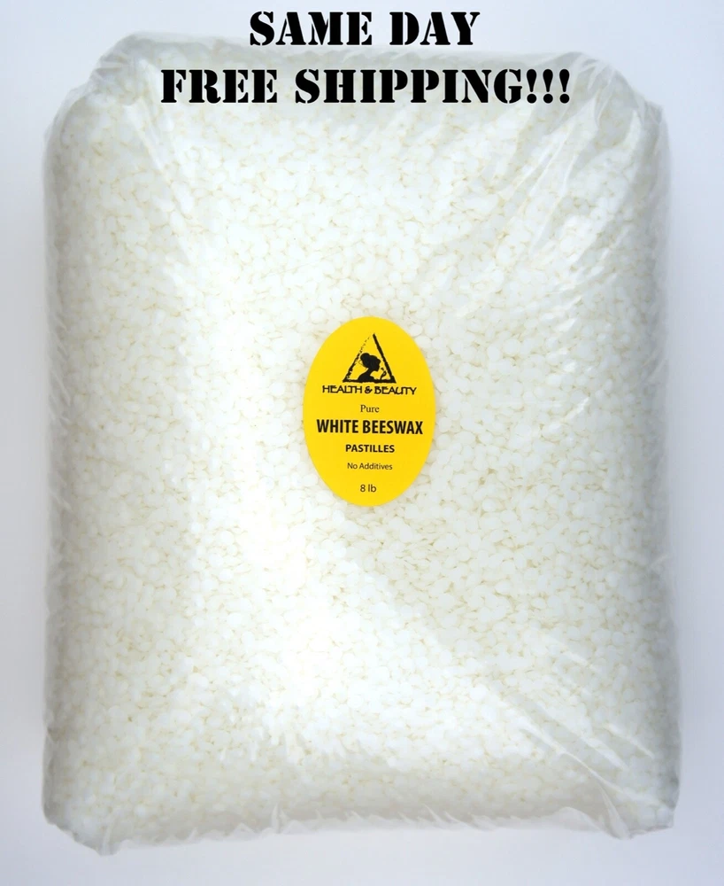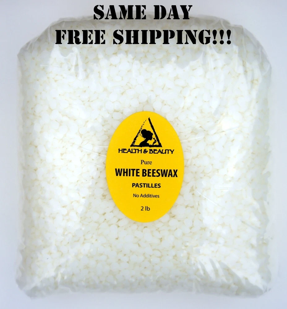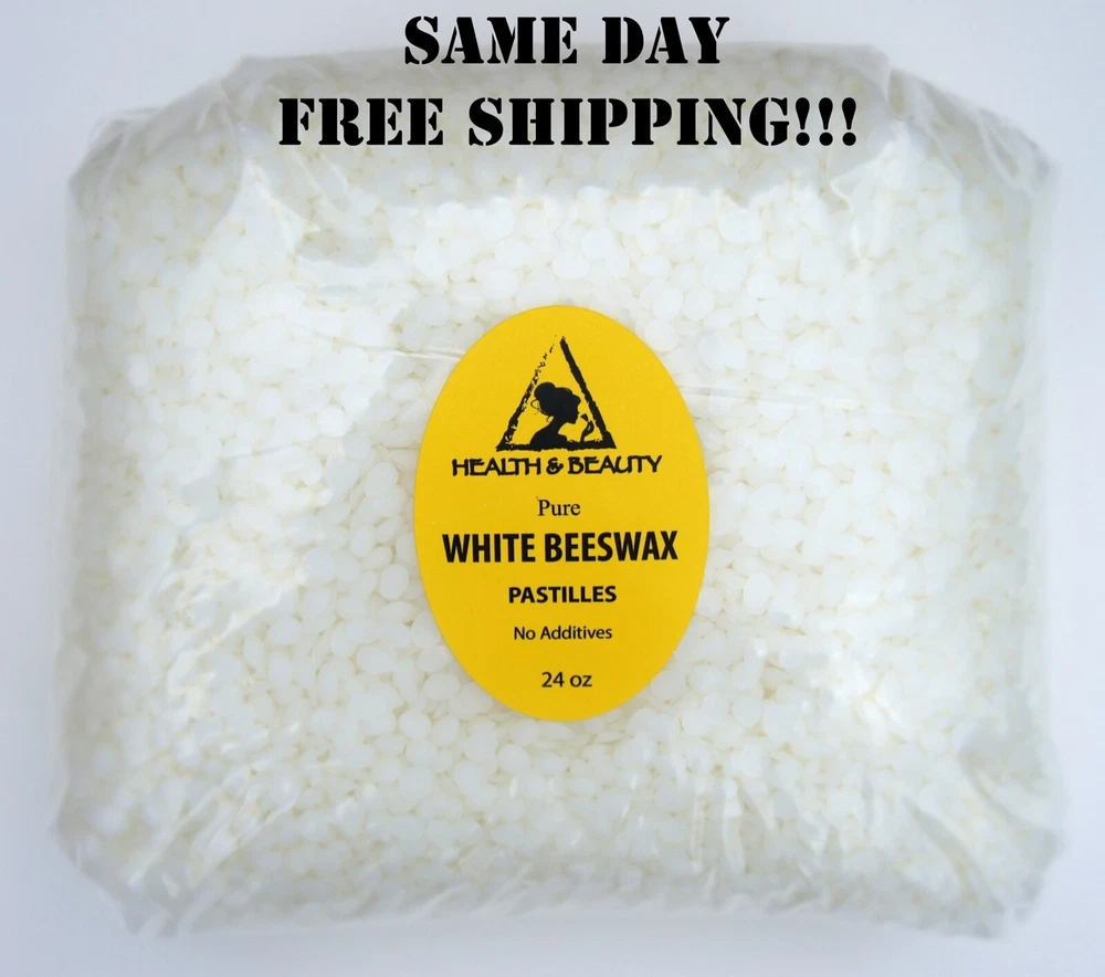 BEESWAX BEES WAX ORGANIC PASTILLES WHITE PURE Beeswax helps improve consistency in body care products. Beeswax is excellent for making candles. Our White Beeswax Pastilles are cosmetic grade beeswax that have been decolorized and filtered to remove any impurities and then shaped into small pellets for easy use. These Beeswax Pastilles are 100% natural and are refined through physical processes – nothing chemical. The color may vary from white to off white with a mild, honey aroma. These are used in formulations where the end product is white in color. Color and fragrance can later be added. Beeswax Pastilles are great in lotions, creams, balms, body butter and even soaps. It provides body and stiffness to formulations and acts as an emulsifier. In Candle making, all natural beeswax burns cleaner and longer than petroleum-based paraffin waxes. There's no smoking since there is no petroleum burning in the candles. Made from 100% pure refined beeswax, this slow burning wax can be used pure and should be considered when making aromatherapy grade candles. We are buying our product from organic certified supplier, made with organic ingredients. FREE SHIPPING WITH FREE TRACKING NUMBER FOR ALL ITEMS Your item(s) will be shipped the same business day or next business day of confirmation of payment if received by 3:00 pm PST. (not including weekends or holidays). When you receive your item and are pleased with our transaction, please let us know by leaving positive feedback, we will do the same for you in return. Take this opportunity now and help build a better eBay community. Check other product in MY EBAY STORE!!! Look forward to do business with you, H&B Oils Center .