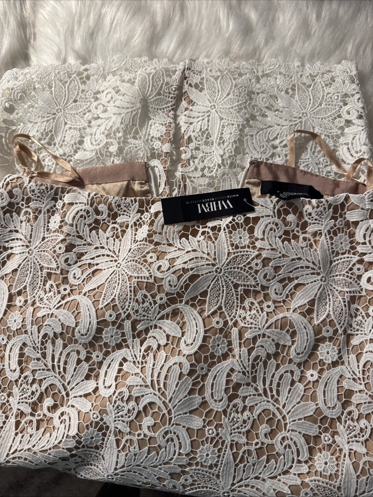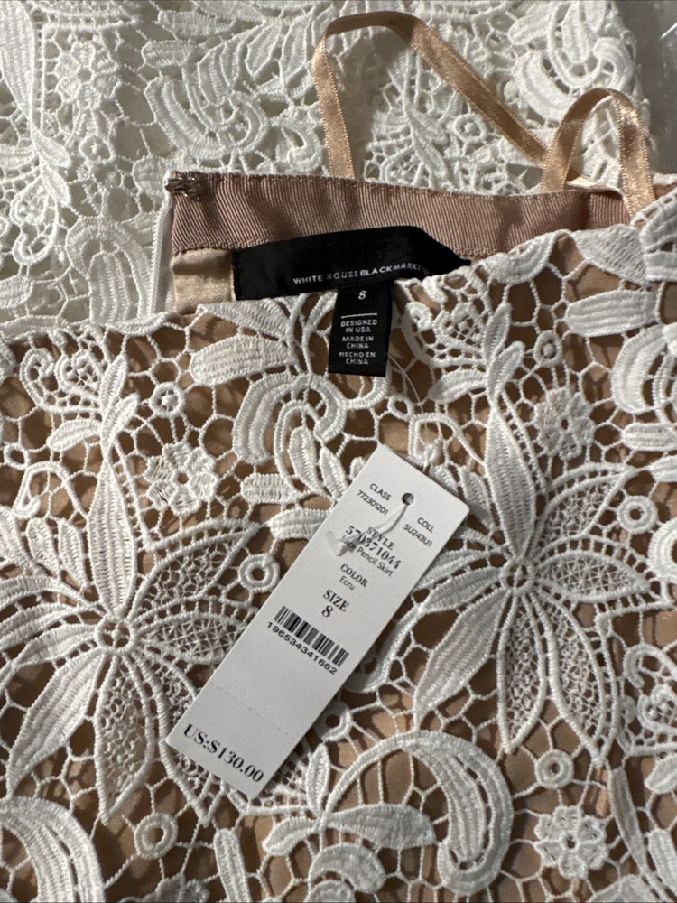 Pattern:EmbroideredStyle:Straight & PencilClosure:ZipVintage:NoHandmade:NoSeason:Spring, Fall, SummerSize:8Personalize:NoType:SkirtBrand:White House Black MarketRise:MidDepartment:WomenFeatures:LinedSize Type:RegularSkirt Length:MidiOccasion:Casual, Party/Cocktail, TravelColor:WhiteFabric Type:LaceAccents:EmbroideredCountry of Origin:China