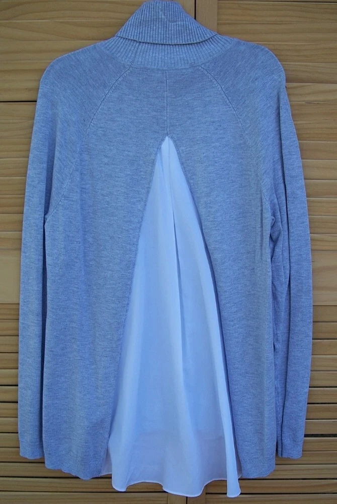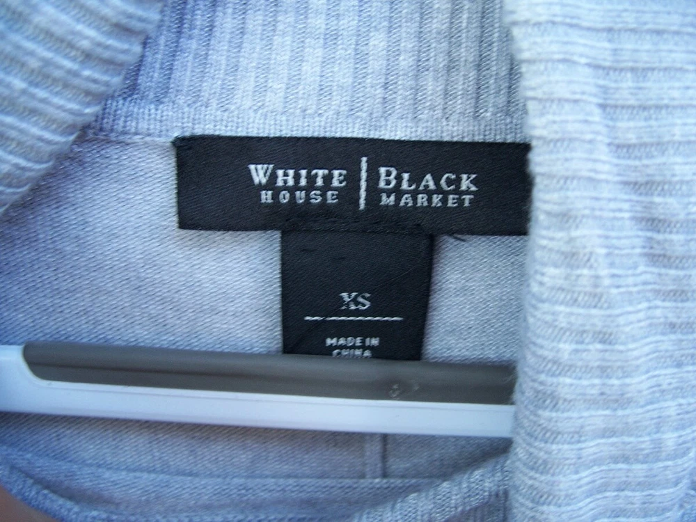 WHITE HOUSE BLACK MARKET heather gray turtleneck sweater~ladies size XS~vented b WHITE HOUSE BLACK MARKET heather gray turtleneck sweater~ladies size XS~vented b Ladies WHITE HOUSE BLACK MARKET sweater with a vented back *Size: XS *Fabric: sweater is 80% rayon/20% nylon and white vented center back fabric is 100% polyester *Color: heather gray and white *Long Sleeves *Turtleneck *Chest: 17 1/2 inches from side seam to side seam laying flat *Length: 26 inches from top center neck to the hem in the back *Sleeves: 17 inches from the underarm at the seam to the hem *Condition: excellent, pre-worn condition with no stains, rips, or tears *We have a smoke-free home. Listing and template services provided by inkFrog