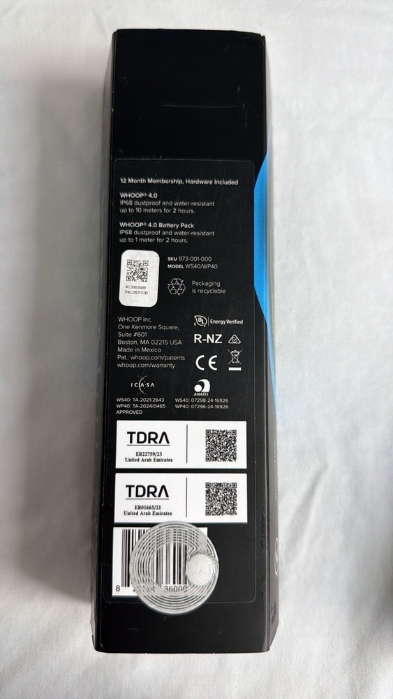 Brand new WHOOP 4.0 fitness and health tracker, factory sealed and never used. Item comes in original packaging as shown in photos. Includes: • WHOOP 4.0 device (hardware) • Onyx SuperKnit band • Battery pack • 12-month WHOOP membership included • Original box and packaging Key features: • Advanced fitness, sleep, recovery, and strain tracking • Lightweight, screenless design • Water-resistant (IP68) • Comfortable SuperKnit band suitable for all-day wear
