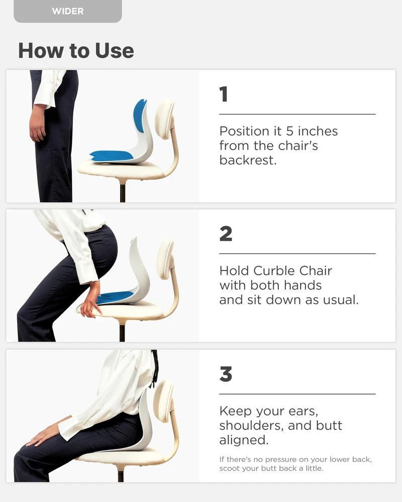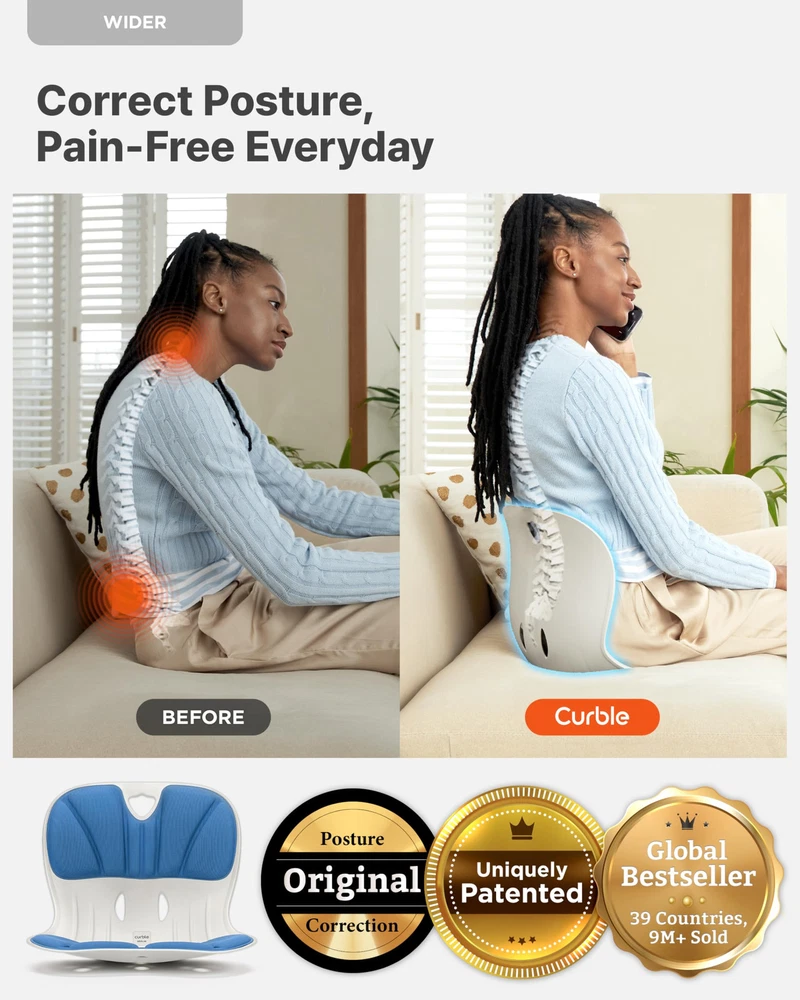 HOW IT WORKS; Working by the leverage effect, the weight of your body naturally pushes your waist for posture correction, It keeps making your body lean forward and sit straight SAY GOODBYE TO BAD SITTING HABITS; Do you often feel tension in your muscles after sitting for a long time? That's because you've probably developed bad sitting habits over time. But with , you can break those habits and start feeling more comfortable - all in just 30 minutes a day for two months! FEATURES; Ergo back support for posture correction, Curved seat for pervis and coccyx lifting, High density foam cushion for comfort, Air holes for ventilation USE EVERYWHERE; Light weight(2 lbs) and easy to use, Put it on an office chair, gaming chair, driving car seat, bed, couch, floor, school chair, desk chair, computer chair, stadium bleacher, etc. DURABLE AND ERGONOMIC; Our chair is built to last! abrasion-resistant material that can withstand up to 600 lbs of pressure without breaking. Plus, the elasticity provides strong and flexible support. RECOMMEND FOR; office workers, students, drivers, teachers, professional gamers, artists, or anyone who is concerned about lumbar or back health and wants to improve posture VALUABLE GIFT; Health is one of the most important factors in life, Chair helps to make good health habits, It will be a valuable addition to your loved ones, her or him