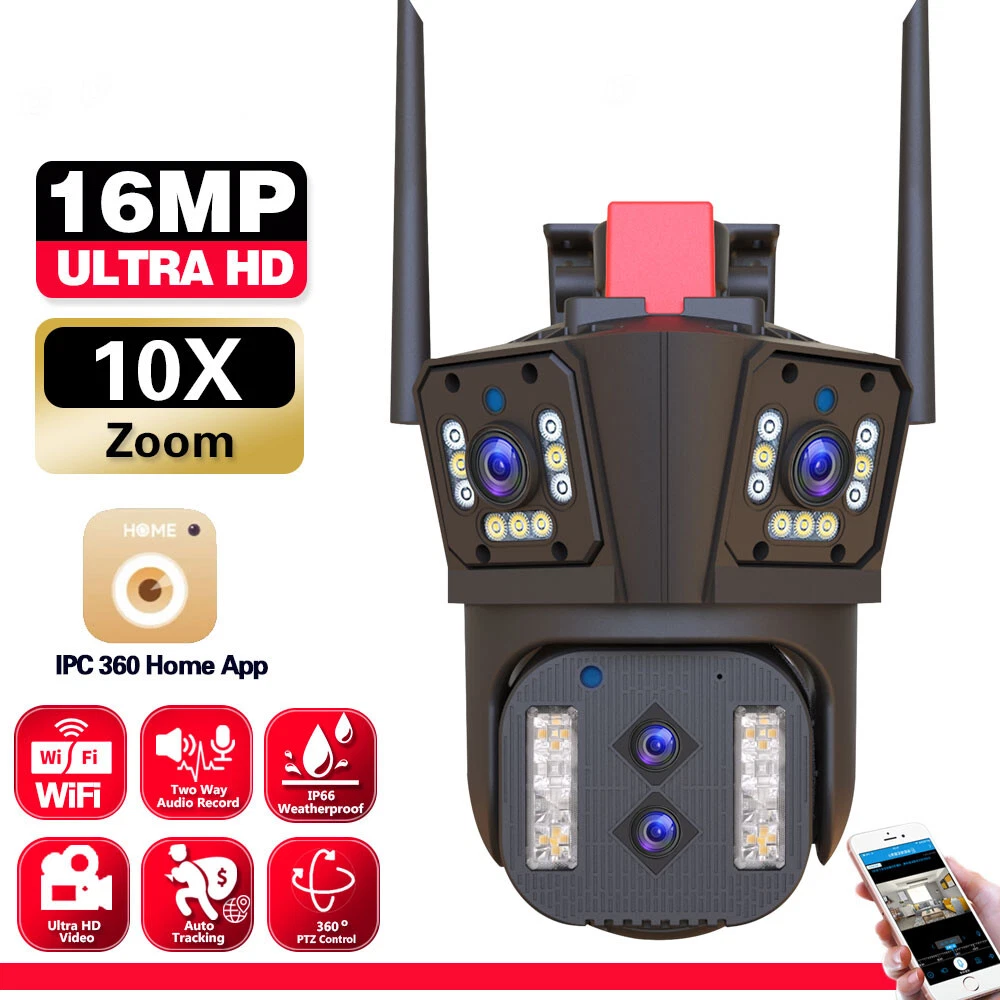 Hot Products 5G WIFI Wireless IP Door Peephole Camera Motion Detect Recording For Smartphone 49.99 USD 6.49 USD Outdoor ICSee WiFi Wireless IP Camera Dual Lens FHD CCTV PTZ Home Security Cam 32.99 USD Free shipping YCC365 Plus WiFi Wireless Camera PTZ IP Smart Home Surveillance Security Camera 25.59 USD Free shipping Dual Lens 8MP 4K WiFi Solar Camera Wireless Outdoor CCTV PTZ Home Security Cam # 17.99 USD Free shipping 20X Zoom Dual Lens HD 8MP WiFi Solar Camera Wireless CCTV PTZ Home Security Cam 189.99 USD 6.3 USD Solar Security Dual Lens Camera Outdoor Home 8MP Wifi Wireless IP Cam PTZ CCTV A 19.59 USD Free shipping SAFE & SECURE SHOPPING 100% SATISFACTION GUARANTEED FAST SHIPPING 4K Wifi Security Camera Four-Lens 10X Zoom Outdoor PTZ IP Night Vision Cam 16MP Product Description Features: HD 16MP High Definition Display 16MP camera, meaning four lenses, each with 4MP, 4MP+4MP+4MP+4MP=16MP Clear Two Way Audio Camera is built with microphone and speaker. So you can talk to your kids via your Smartphone remotely whenever you want. Four Lens and Three Screen The camera is equipped with four lenses, and the upper two fixed lenses . The bottom lens has a pan-tilt zoom function, which can control rotation and multi-angle viewfinder to achieve dual-screen display and multi-angle viewfinder 10X Optional Zoom Camera can zoom in to view more detailed information of other objects without getting close, or zoom out to get a larger and larger view. AI Human Auto Tracking When someone passes through the alarm area, the camera will detect the person's movement. And track people. Motion Detection & Email Alert & Alarm Sound Effectively filter invalid alarms and make the alarms more accurate, it only detects the human movement. When the camera detects the human movement, you will receive the notification that APP pushed. One camera monitors 3 locations simultaneously Ordinary surveilance cameras on the market, if you turn one side, you won't be able to see the other side. lf you ignoreone aspect, you can only control a fixed perspective range, and areas outside the perspective range are blind spots Full Color Night Vision When the white LED light is on, the camera will display colorful vision at night, and there are three night modes for you to choose. PTZ Control by APP ( IPC360home ) Rotates 355° Horizontally and 90° Vertically.You can control it in the APP directly whenever you want and wherever you are. IP66 Waterproof The camera is equipped with IP66 case , which is waterproof, sun-proof and dust-proof. It is suitable for any environment. Advanced H.265 Video Compression H.265 (HEVC) doubles the coding efficiency compared with its predecessor H.264. H.265 video saves around 50% of the bit rate at the same quality of coding.H.265 only need less bandwidth, faster loading speed,more smooth video,Lower bite rate,higher image quality! Support TF Card Storage and Cloud Storage The camera supports up to 128GB TF card( Not Included ) and also provides cloud storage service Package List: 1*WiFi Camera 1*Screw Pack 1*Power Supply 1*User Manual Payment Shipping Returns Contact Us Payment 1. We accept payments only by PayPal. 2. Payment must be fulfilled within 4 days after the end of auction. 3. Please make sure your ebay address is correct. Or not, please correct it before payment. 4. If you are a big customer, Please contact with us about the item's PRICE and SHIPPING. 5. Your feedback & suggestion is deeply appreciated, thanks. Shipping 1. Please make sure your address in ebay is correct. 2. We will only follow your address listed in the ebay orders for the shipment. 3. Items for most orders will be dispatched from the US warehouse (Locations: Walton, Kentucky/Rancho Cucamonga/California) within 2 business day of receipt of your payment confirmation, and you can receive them within 2-3 business days. Delivery depends on destination and other factors; it may take up to 5 business days or more, thank you for your understanding! 4. Import duties, taxes and charges are not included in the item price or shipping charges. which should be the responsibility of the buyer.Please inquire at the customs office of your country, which incurred additional costs before offering / buying. 5.Damaged on Arrival: When you sign the parcel, please check it carefully.You'd better take a video or photos when open it.If there is any damage or shortage for your parcel, please contact your Post Office or Express Company immediately. Please send video or photos to our service staff at the same time. Returns 1. If the item is defective, we can return the item within 30 days after you receive it. 2. Returned items must have all original packaging and accessories. 3. The seller is responsible for the return shipping. Contact Us 1. We greatly appreciate your POSITIVE feedback. 2. Negative or Neutral feedback does not resolve any underlying issues that you may be experiencing as a buyer. 3. Any question or unsatisfaction please contact us with ebay message, we will sincerely solve for you. Our Working Time is BeiJing: 9:00AM -- 6:00PM (Monday to Friday) Please allow us at least 24 hours to reply you when in the office, thanks! Copyright © 2022 Tongtool