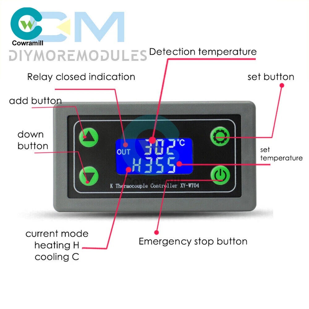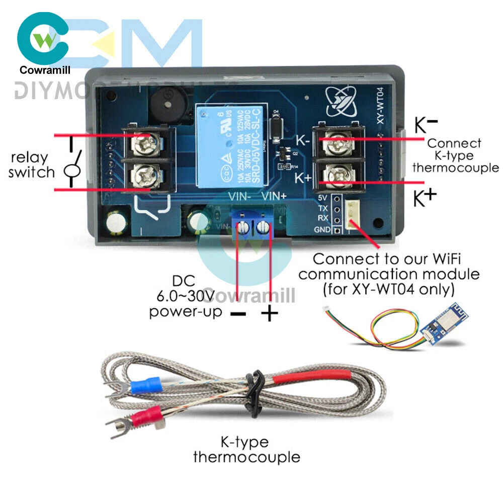 Home Arduino Module Sensor Chips About Us Item Description Features: 1: Wide range of applications 2: Remote operation 3: The system is stable 4: Simple to use 5: Small size, easy to carry Product parameters: Product name: Specifications of high temperature digital thermostat Model:XY-WT04 Supply voltage: DC6~30V Temperature control range: -99~999℃ Measurement input: K-type thermocouple Resolution: 1℃ Temperature measurement accuracy: ±2℃ Output type: 1-way relay switch Maximum control: current 10A or more Inside and outside dimensions: 79*43*30mm Package list: 1* High temperature digital thermostat Payment Shipping Refund Payment We accept PayPal only. But we only Accept your Ebay Address ,Please Make sure it's 100% right. Payment must be received in 5 business days of auction closing. Please leave note for your special request (e.g. Colors or Size) in PayPal when you pay the order. Any special request cannot be accepted after 24 hours of payment, because most of orders will be processed instantly and same day dispatched. Shipping Fill your shipping info Refund All package need to wait 30 days (US only need 7-10 days) , Please take care it.Less than 30 days,we can't take a refund . If the item is defect when you receive it or you are not satisfied with it, please return it within 14 days for a replacement or money back. But the items must be back in factory condition. Please contact us and double check the return address before you return it. If is item is defective in 12 months, you can return it to us. We will send you a new replacement after receiving the defective item.