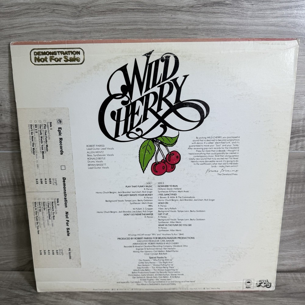Edition:First Edition, First PressingFeatures:Original Cover, Original Inner SleeveRelease Title:Wild CherryType:LPArtist:Wild CherryLanguage:EnglishEra:1970sColor:BlackCatalog Number:PE 34195Material:VinylUPC:Does not applySpeed:33 RPMCase Type:Cardboard SleeveNumber of Audio Channels:StereoCountry of Origin:United StatesRecord Size:12"Format:RecordRelease Year:1976Record Label:EpicStyle:Disco Funk, FunkGenre:Funk, Rock, Soulgtin13:Does not apply