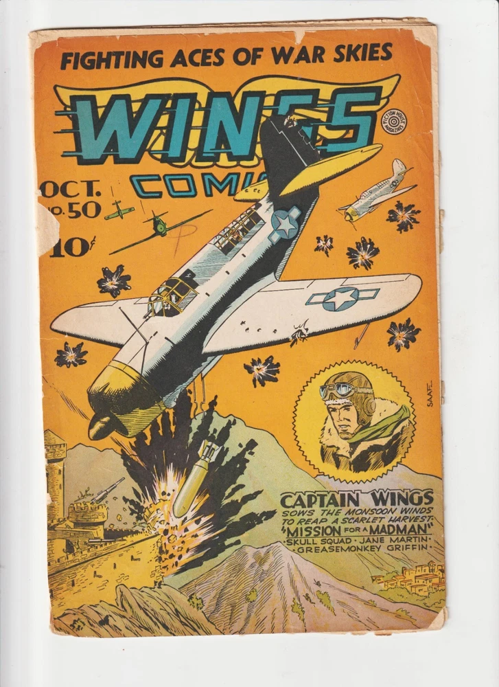 HomeWINGS 50 GOLDEN AGE WAR COMIC FICTION HOUSE WWII/ FAIR NO BACK COVER