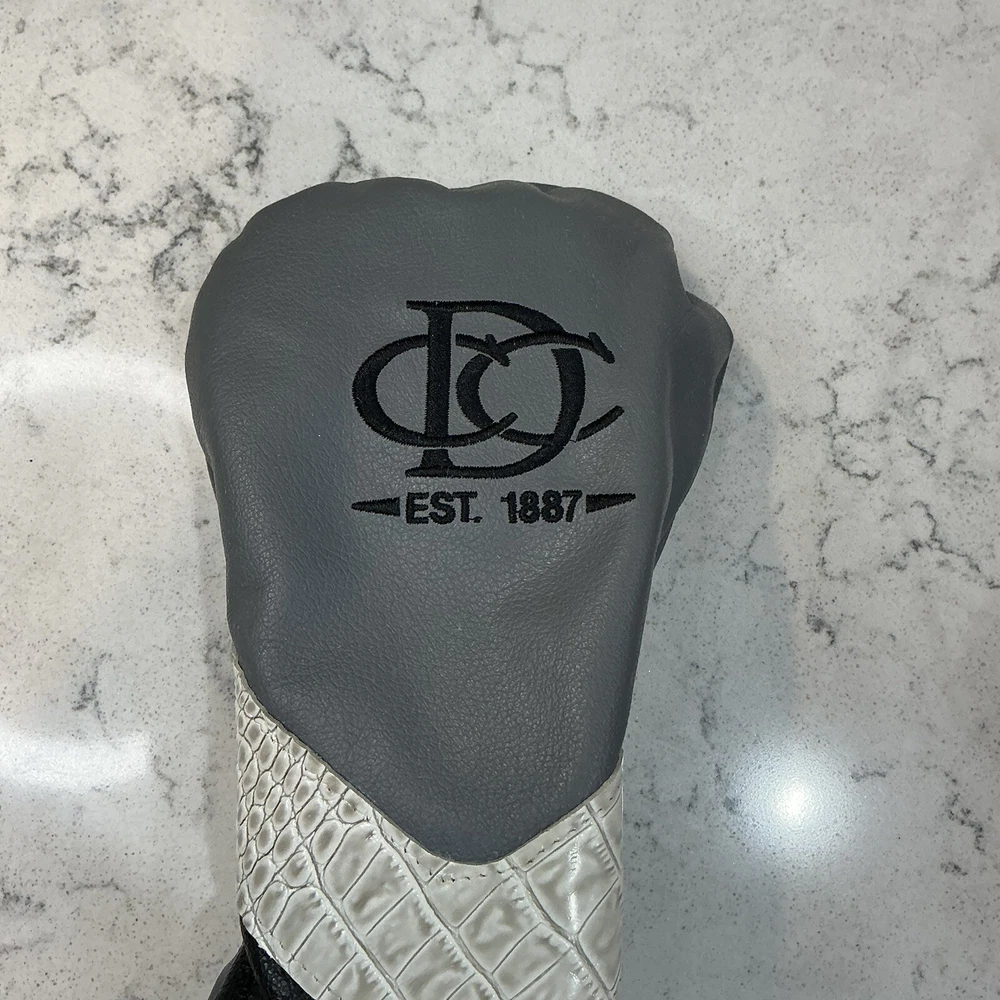 Protect your golf club in style with this Winston Collection Leather Golf Driver Head Cover. This head cover is designed to fit most driver clubs and features an embroidered design with the Denver Country Club Clubhouse logo. Made of high-quality leather, this head cover is durable and will last for years to come. Measuring 14 inches in length and 5.5 inches in width, this head cover is the perfect size to protect your club from scratches and damage. The white color adds a touch of elegance to your golf bag and the embroidered design is sure to catch the eye of your golf buddies. Add this Winston Collection Leather Golf Driver Head Cover to your collection today and protect your club in style.