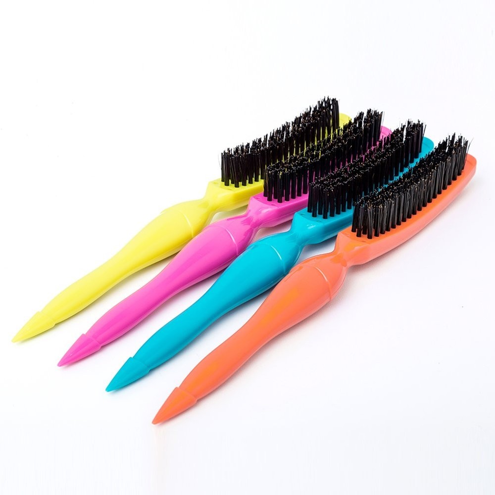 NINGBO YONGSHENG BRUSH CO.,LTD. is an industry manufactory which specialized in producing different kinds of brushes. This item,Bamboo paddle brush with a pretty good quality and very fashion design.It is a good choice for both individuals and gifts. PROCESS AND DETAIL INFORMATION: Teasing Hair Brush with High Quality and Three row Boar and Nylon Bristle, Teasing Boar and Nylon Bristle Hair Brush’s Size: Length 9.1in*Width 0.7in*Height 1.1in. GOOD FUNCTION: A Combination of Boar Bristles and Nylon Bristles Improve Styling Control during Back Brushing, Boar Bristle may not soft enough but it Include Brushing Naturally cleans and Conditions Hair, Massaging the Scalp, Distributing Hair’s Natural Oils over the Hair Shaft, and Creating Shiny, Smooth, Healthy-looking Hair. The Lightweight Brush makes it Simple to Have on Hand or in Your Purse for Use Throughout and Take Out for a Vacation. BEST SELECTION: Boar and Nylon Teasing Hair Brush is Pretty Good for Woman, Girls and Salon. Three row Teasing Hair Brush could Improve Hair Volume: Add Volume for Fuller-looking Hair, Casual Hairstyles, Suitable for a Variety of Hair Types INFORMATION ABOUT US: We are a Professional Factory to do the Hair Brushes about 20 Years. We have Almost 200 Workers on Our Production Line. This High Quality Teasing Hair Brush is a Special One that We do for You.