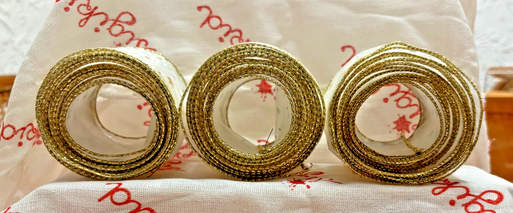 Christmas Wired Ribbon Garland Tree Trim . White Ribbon with Gold Stars & Gold Dots. The spool has never been opened and the other 3 may have been used. They appear unused? I do not ship outside of the USA. Thanks for looking. Please contact me with any questions. I ONLY MAIL IN THE UNITED STATES I ONLY ACCEPT PAYPAL - BE SURE YOUR ADDRESS IS CORRECT ****** ALL SALES ARE FINAL