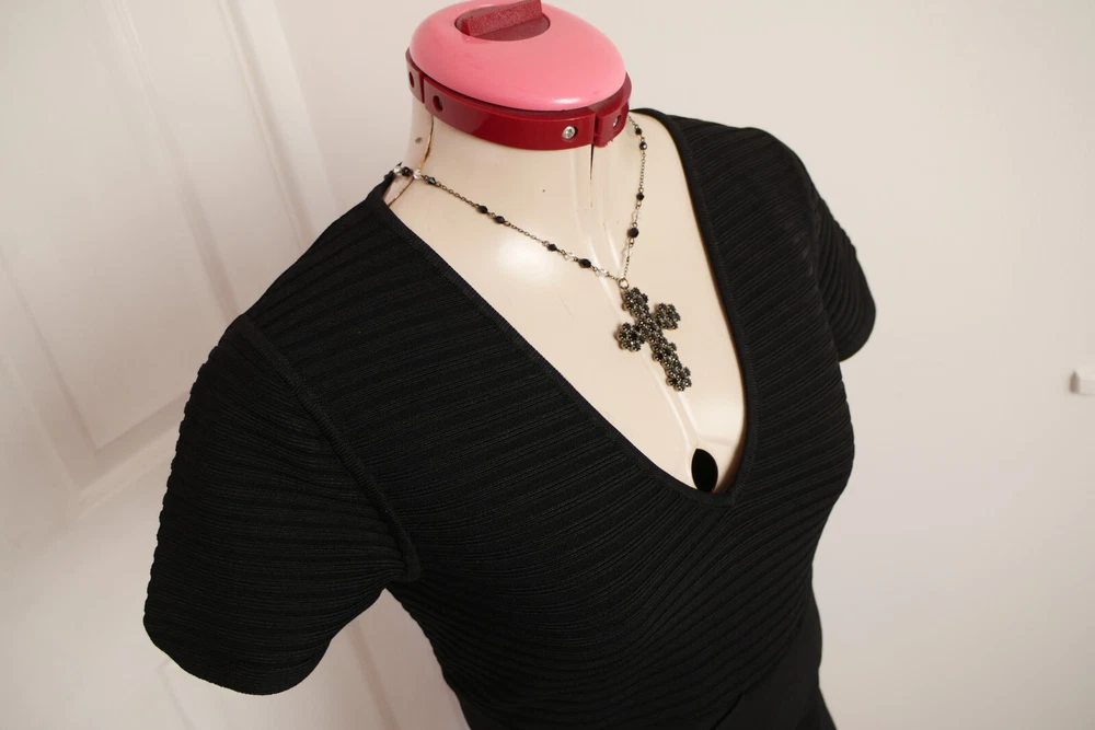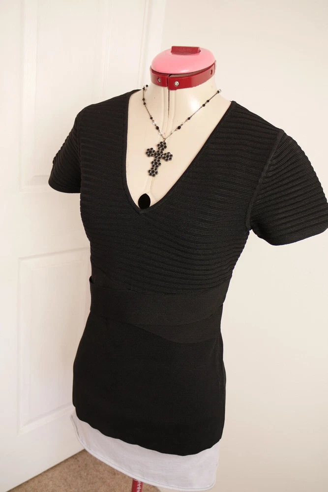 This gorgeous JUMPER has short, cap sleeves and a v-neckline. It is black, in a tight knit, with a textured ‘stripe’ pattern at the bust/sleeves, a crossover design at the waist, and a smooth knit for the rest. The style is ‘Black Mix Stitch Tie Knit’. It is from WITCHERY and is a size ‘XS’, which I have estimated to be a size 8, so please check the measurements below, to ensure a good fit. The approximate measurements are: Bust: 42cm Length: 62cm It is a viscose / nylon mix and needs a cold, hand wash. It is Brand New, With Tags (rrp $139.95). Lots of other information about this fabulous jumper can also be found in Item Specifics. A010 Please take a look at the tons of other gorgeous items I have available in your size! I love to combine postage and save you money! So if you are purchasing more than one item from me, please wait for me to send you a combined invoice, or press the 'Request a Total' button in your Cart before paying. I rate my items in the following way: BNWT / BNWOT: Brand New, With Tags or Brand New, Without Tags (some part of the tag will still be attached). New items that have never been worn. EXCELLENT: has been worn, but shows very few actual signs of wear. GOOD: has been worn and is showing light signs of wear. FAIR: has been worn and is showing more signs of wash/wear - or has a small fault, which will be clearly described in the listing I am only human and can make mistakes in my listings and descriptions - so if for any reason you are unhappy with your purchase, please contact me using the 'Contact Seller' button first, so we can quickly resolve the issue. This item comes from a SMOKE FREE HOME but the odd puppy hair may drift in due to the fact she is my darling shadow throughout the day.