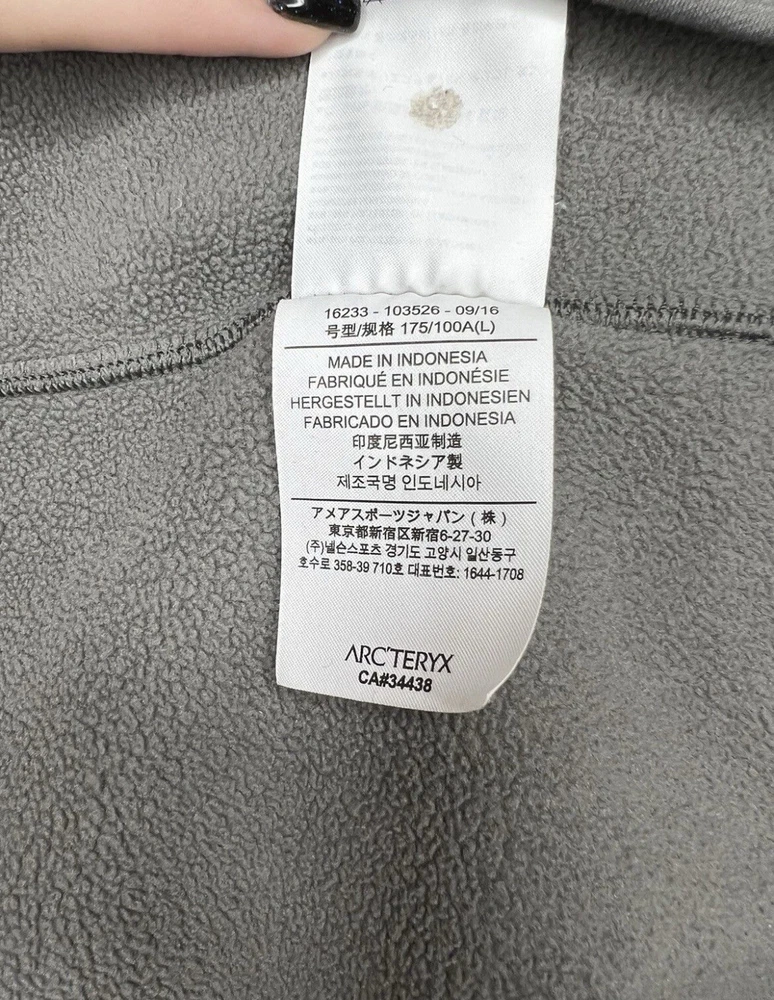 Fabric Type: Fleece Closure: Zip Style: Basic Jacket Size Type: Regular Color: Gray Size: L Brand: Arc'teryx Type: Jacket Pattern: Solid Sleeve Length: Long Sleeve Outer Shell Material: Polyester Fit: Regular Theme: Outdoor Department: Women