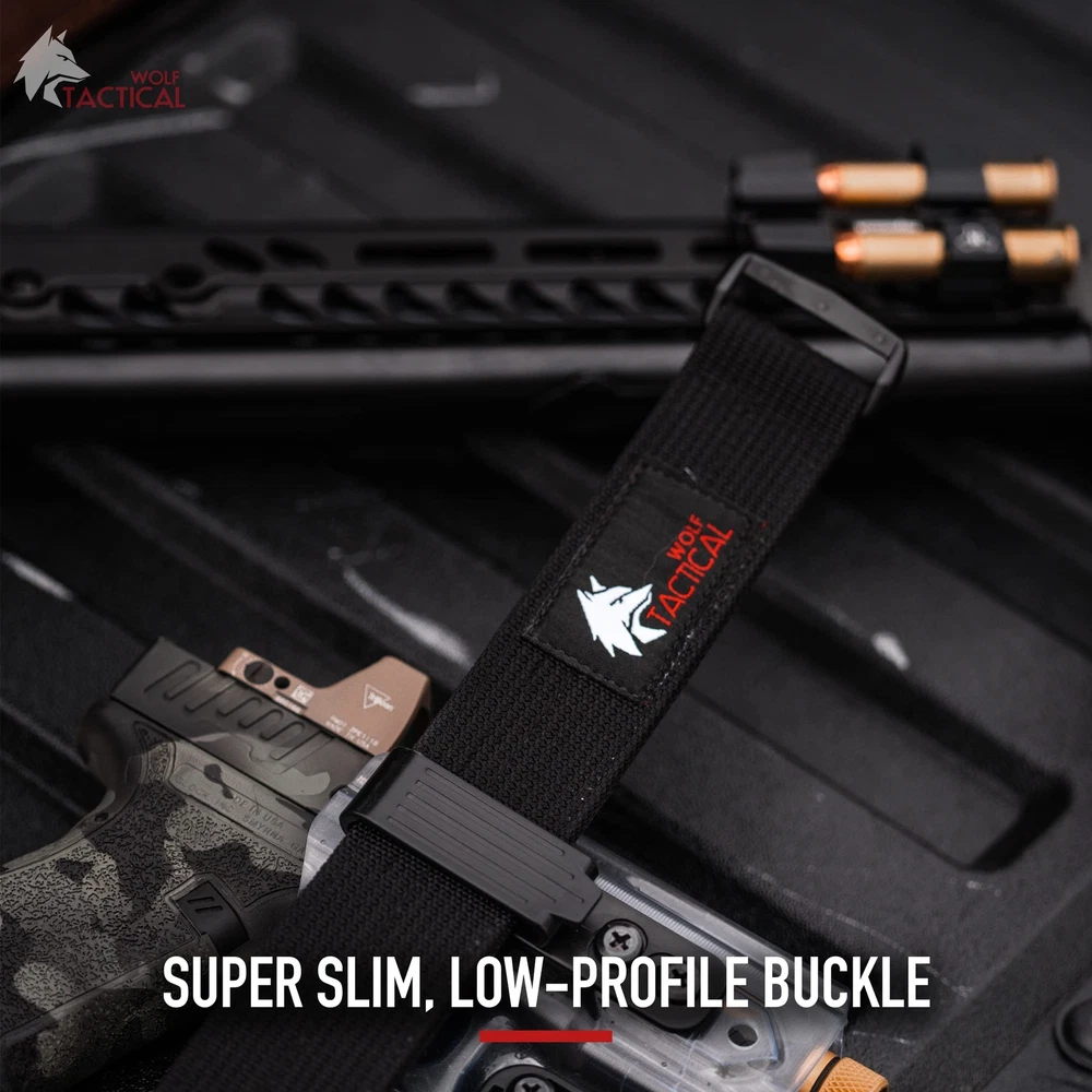 【BUILT FOR CONCEALED CARRY】★ Featuring stiffened 2-ply nylon webbing to support IWB and OWB holsters without rolling over, our EDC belt provides a safe and reliable foundation for CCW. Firmly attach your holster, mags, and pouches whether you’re at the range or carry every day. NO BEND, NO SAG. 【SIMPLE LOW-PROFILE BUCKLE】★ The super slim polymer buckle gives our belt a sleek, low-profile look, and is perfect for AIWB appendix carry. Velcro hook and loop secures the running end to make sure your belt stays cinched and will never slip. Our tactical belt is perfect for military, law enforcement, first responders, hunting, wilderness and outdoor survival. 【PREMIUM HEAVY DUTY MATERIALS】★ Crafted with two layers of rugged, rip-resistant 1.5” nylon webbing reinforced for added rigidity, our gun belt will withstand even the most extreme conditions. Whether you use our belt for everyday carry, tactical training, or outdoor sports, Wolf Tactical ensures that you stay ready. 【COMFORTABLE AND ADJUSTABLE】★ For an EDC belt, comfort and fit are king. Double-layer nylon webbing makes the perfect combination of rigidity and comfort. No holes in the belt means you can fully adjust for a custom fit according to the firearm, gear, and accessories you’re carrying. 【TRUSTED WOLF TACTICAL QUALITY】 ★ Wolf Tactical gear is crafted for those who conquer challenges and never settle for less. Proudly based in the USA, our products embody determination, unity, and an unyielding drive for excellence. Equip yourself with gear designed to empower a lifestyle of resilience and achievement. Shop with confidence.