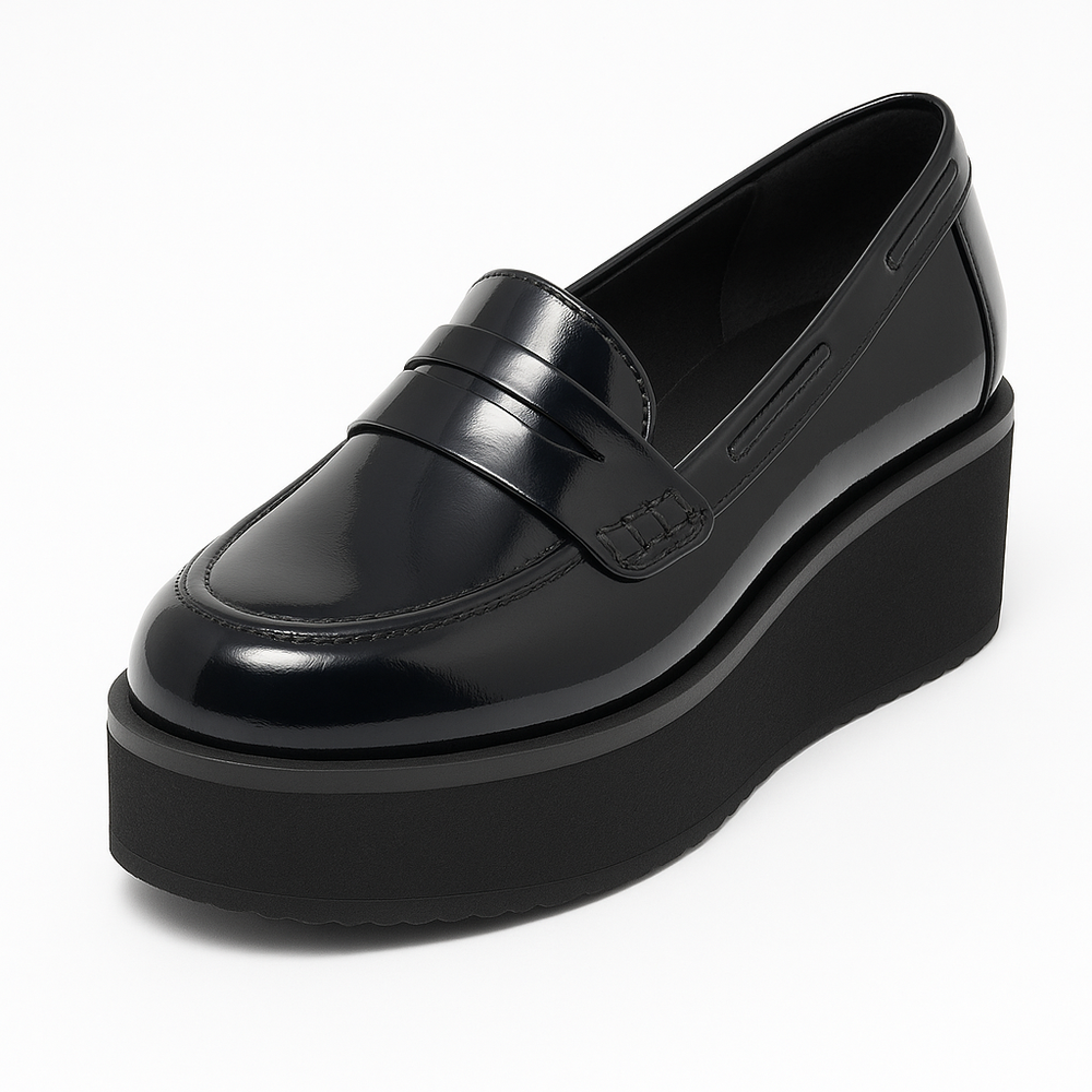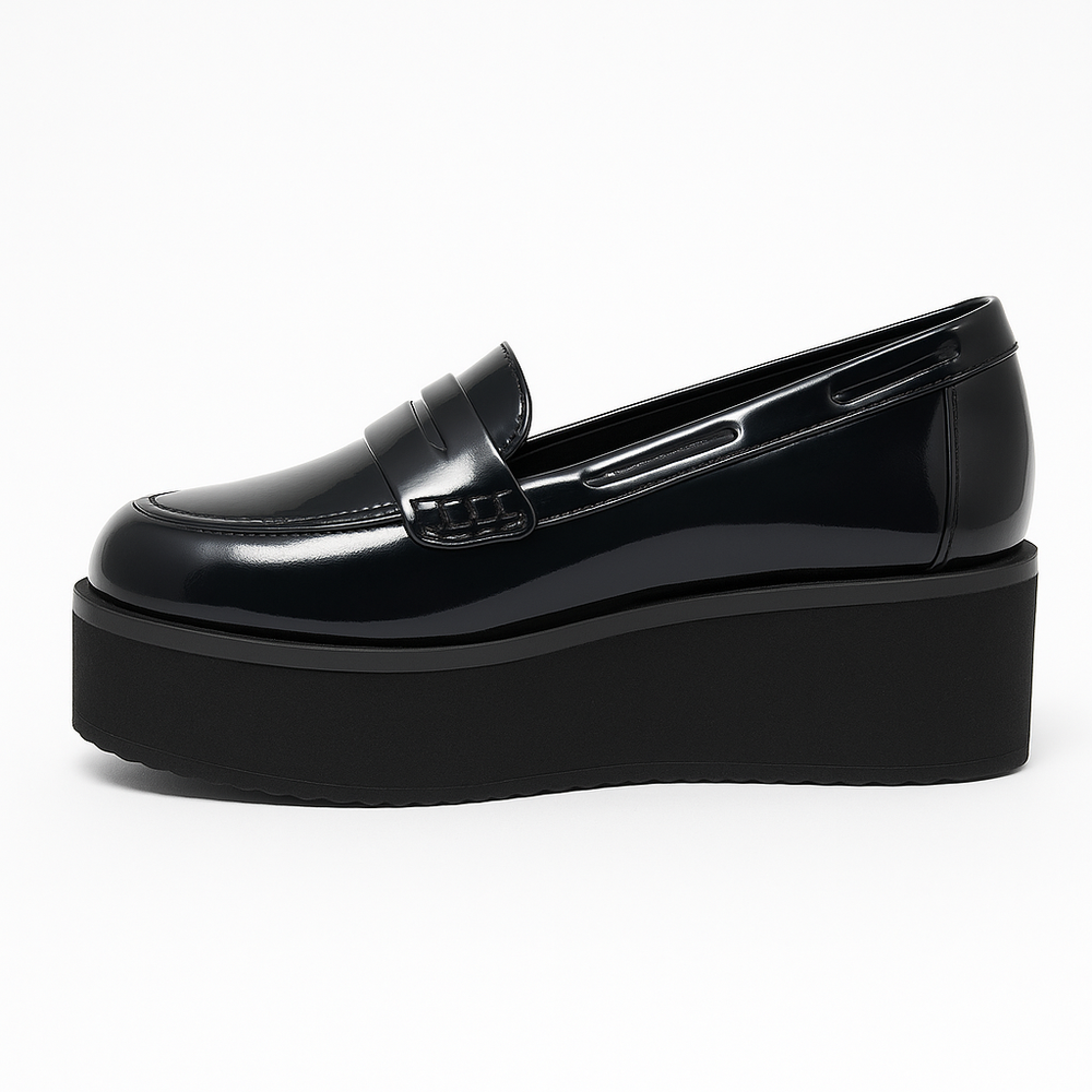 Step into effortless style with these Women's Penny Loafers, featuring a chunky platform sole that adds a touch of Gothic flair to your ensemble. Crafted in a sleek black faux leather, these shoes are a versatile choice for a range of occasions, from business meetings to casual outings or even cocktail parties. The loafers are designed with comfort in mind, boasting motion control and a non-slip outsole to ensure stability. The closed-toe silhouette and synthetic lining keep the shoes lightweight, perfect for wear across seasons from the warmth of summer to the cooler autumn days. Their narrow-slim shoe width ensures a snug fit, making them a smart addition to any wardrobe.