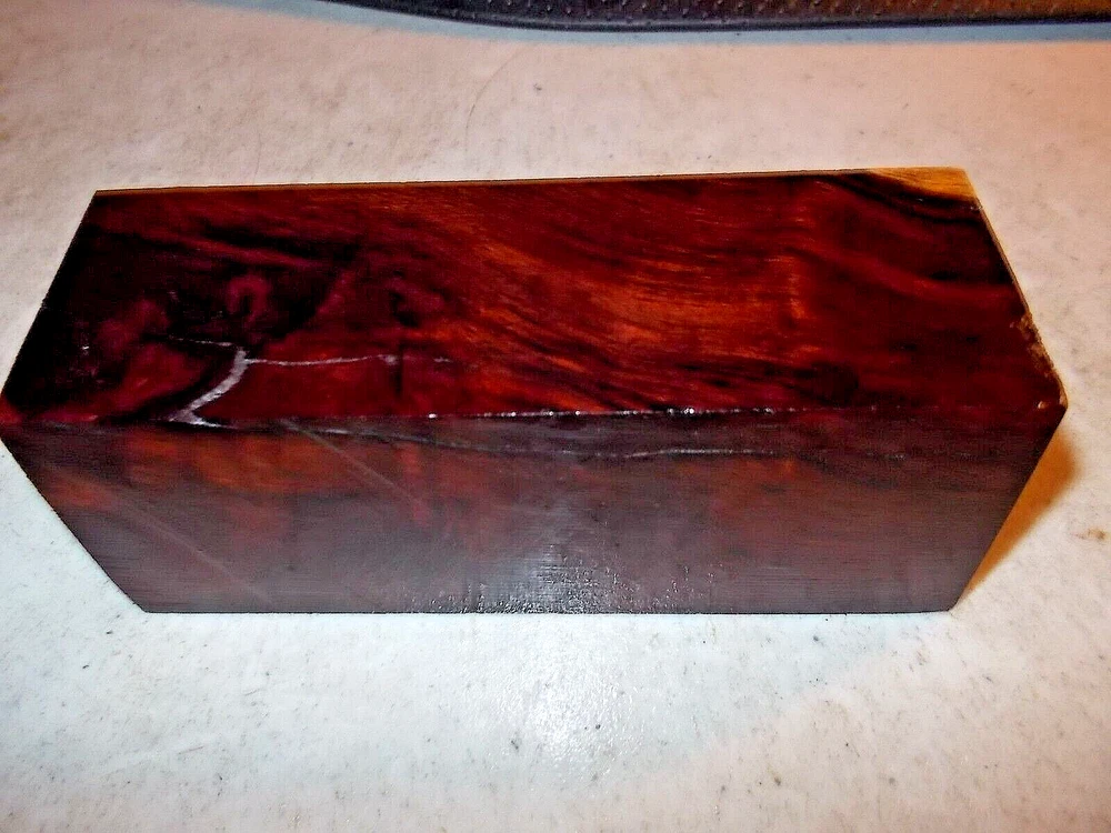 .This Honduran rosewood burl block is perfect for making gun grips, knife scales, and box tops. The rich, deep color and intricate grain pattern make it a stunning choice for any woodworking or crafting project. Harvested from Honduras, this rosewood is known for its durability and strength, making it a reliable choice for high-use items. The cutlery blanks aspect allows for endless creative possibilities, and the model aspect specifically refers to the type of wood used. In addition to gun grips and knife scales, this block can also be used for turning blanks, adding to its versatility. Perfect for both novice and experienced woodworkers, this Honduran rosewood burl block is a must-have for any crafting, collecting or woodworking project. SIZE= 1 1/2" x 1 3/8" x 4"