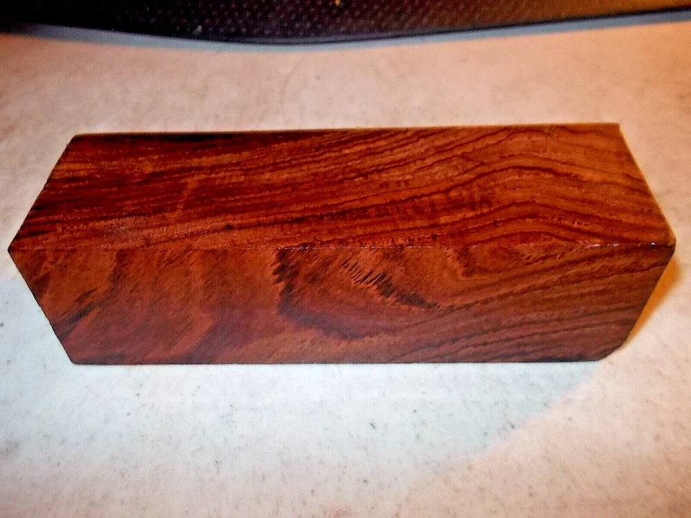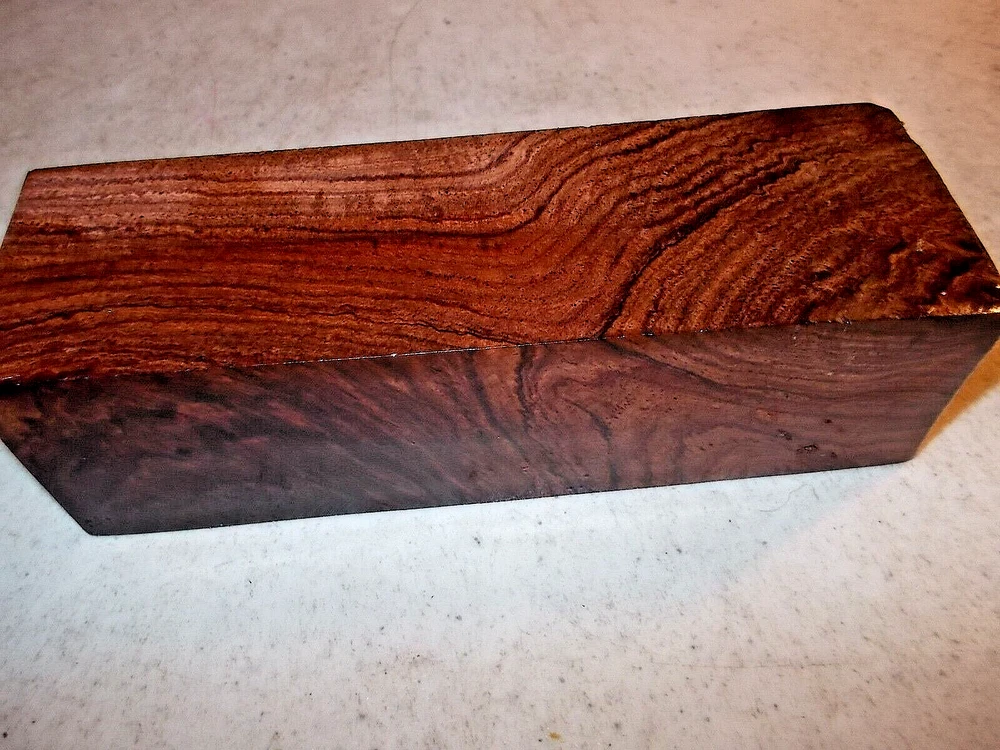 .This Honduran rosewood burl block is perfect for making gun grips, knife scales, and box tops. The rich, deep color and intricate grain pattern make it a stunning choice for any woodworking or crafting project. Harvested from Honduras, this rosewood is known for its durability and strength, making it a reliable choice for high-use items. The cutlery blanks aspect allows for endless creative possibilities, and the model aspect specifically refers to the type of wood used. In addition to gun grips and knife scales, this block can also be used for turning blanks, adding to its versatility. Perfect for both novice and experienced woodworkers, this Honduran rosewood burl block is a must-have for any crafting, collecting or woodworking project. SIZE= 1 1/2" x 1 1/2" x 5 7/8"