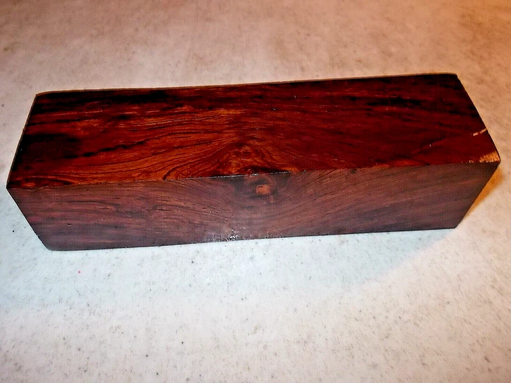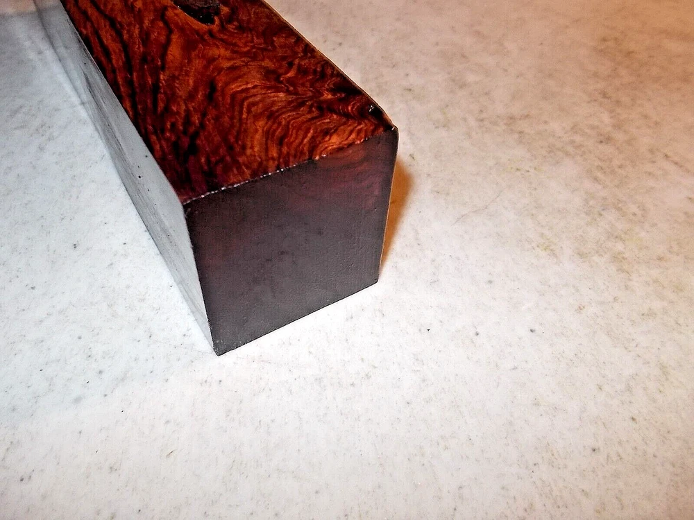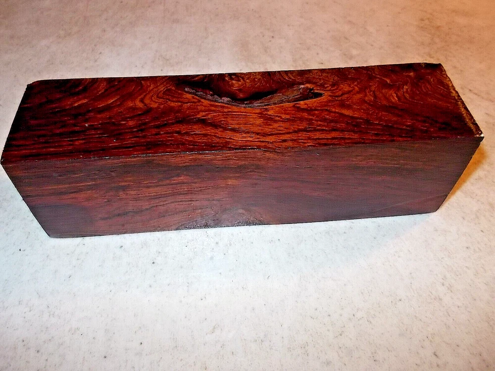 .This Honduran rosewood burl block is perfect for making gun grips, knife scales, and box tops. The rich, deep color and intricate grain pattern make it a stunning choice for any woodworking or crafting project. Harvested from Honduras, this rosewood is known for its durability and strength, making it a reliable choice for high-use items. The cutlery blanks aspect allows for endless creative possibilities, and the model aspect specifically refers to the type of wood used. In addition to gun grips and knife scales, this block can also be used for turning blanks, adding to its versatility. Perfect for both novice and experienced woodworkers, this Honduran rosewood burl block is a must-have for any crafting, collecting or woodworking project. SIZE= 1 1/4" x 1 1/2" x 5 1/8"