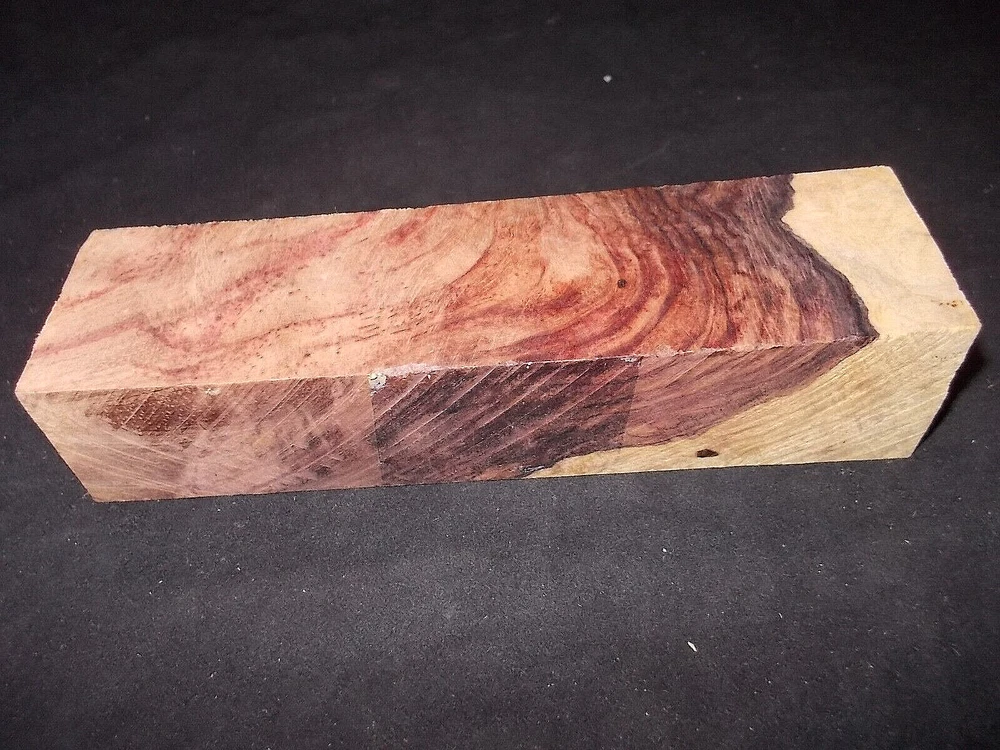 .This Honduran rosewood burl block is perfect for making gun grips, knife scales, and box tops. The rich, deep color and intricate grain pattern make it a stunning choice for any woodworking or crafting project. Harvested from Honduras, this rosewood is known for its durability and strength, making it a reliable choice for high-use items. The cutlery blanks aspect allows for endless creative possibilities, and the model aspect specifically refers to the type of wood used. In addition to gun grips and knife scales, this block can also be used for turning blanks, adding to its versatility. Perfect for both novice and experienced woodworkers, this Honduran rosewood burl block is a must-have for any crafting, collecting or woodworking project. SIZE= 1" x 1 3/8" x 5" APPROXIMATELY