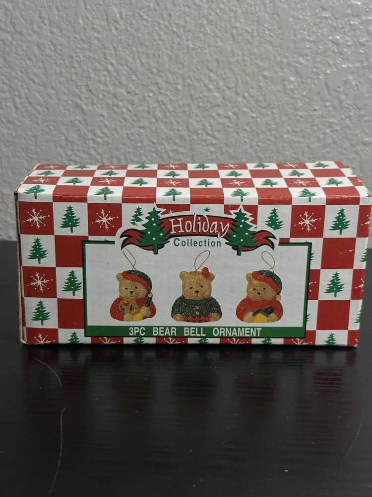 WORLD BAZAARS 3 Little BEAR BELL Glazed Pottery Ornaments Holiday Collection NEW