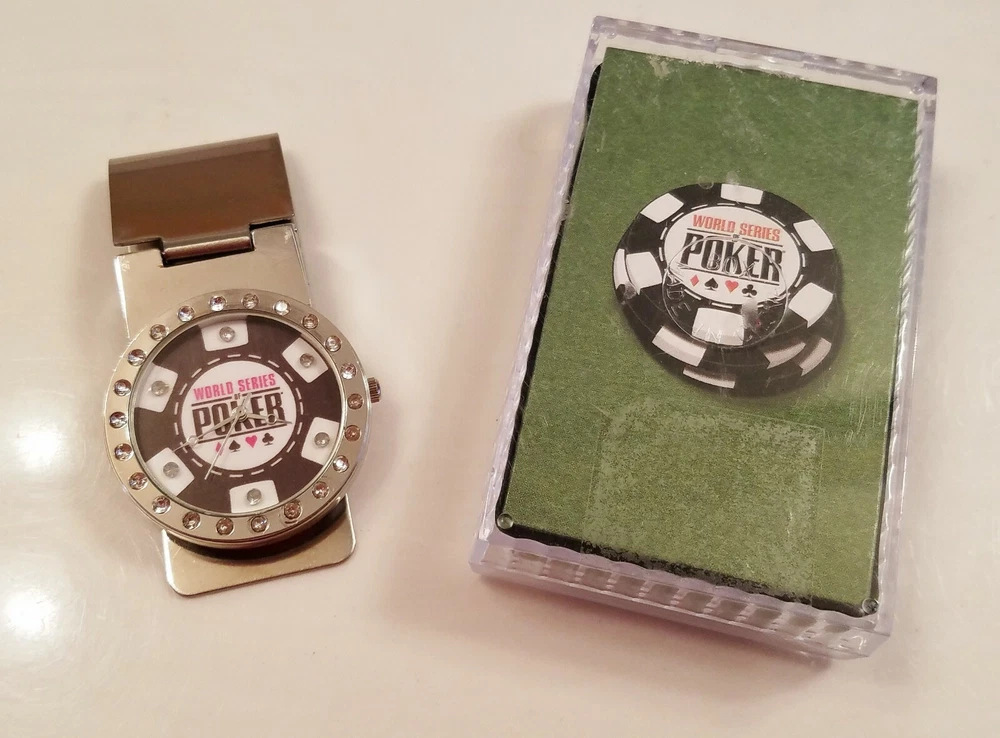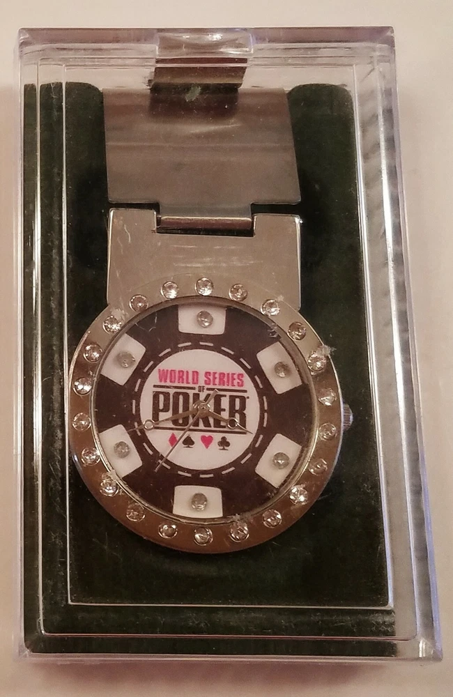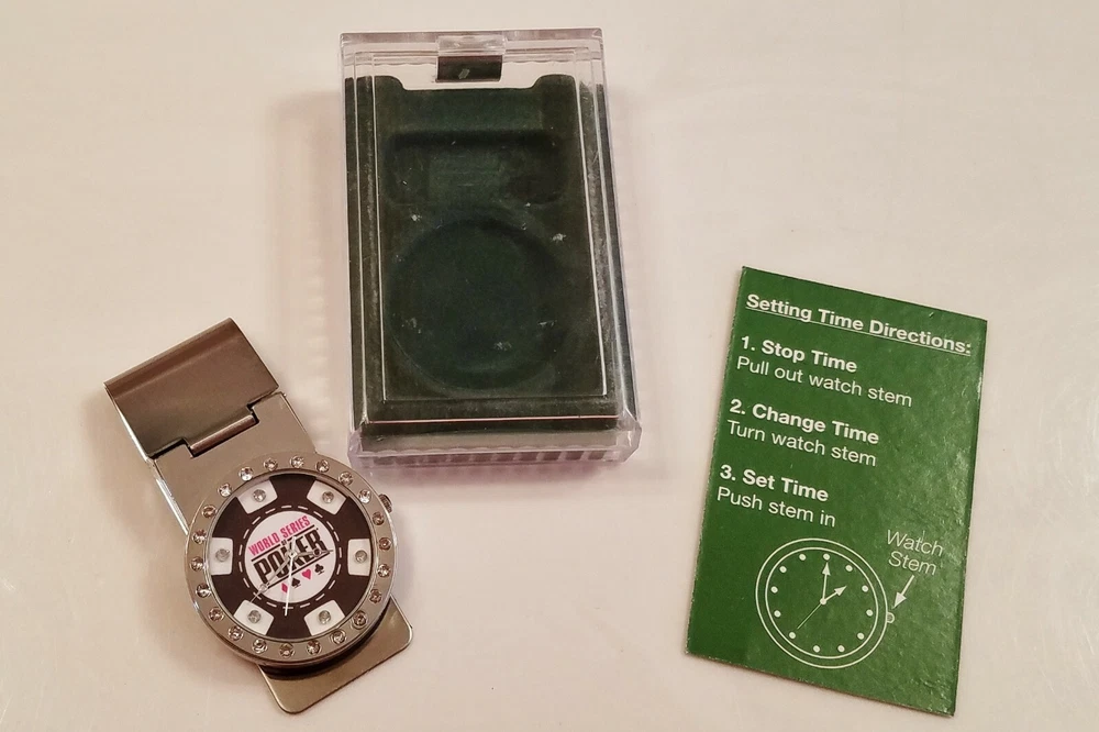 WORLD SERIES OF POKER SOUVENIR WATCH FACE MONEY CLIP 1 1/2"W x 2" L Works/New Battery **RARE**