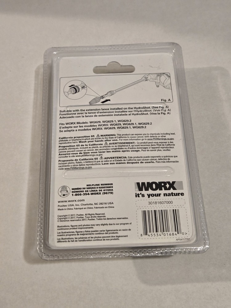 The WORX WA4037 Hydroshot Turbo Nozzle Accessory is designed for use with the Hydroshot Portable Cleaner. This black nozzle features a Quick Connect design for easy attachment and a Turbo style for enhanced cleaning power. With dimensions of 1.5" in height, 4.25" in length, and 1.5" in width, this accessory is lightweight at 1.21 lbs. It is a versatile tool for outdoor cleaning tasks, delivering a strong and focused spray to tackle dirt and grime effectively.