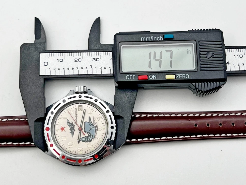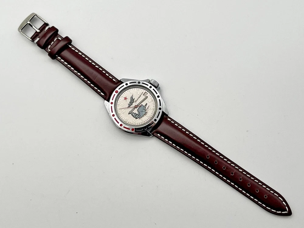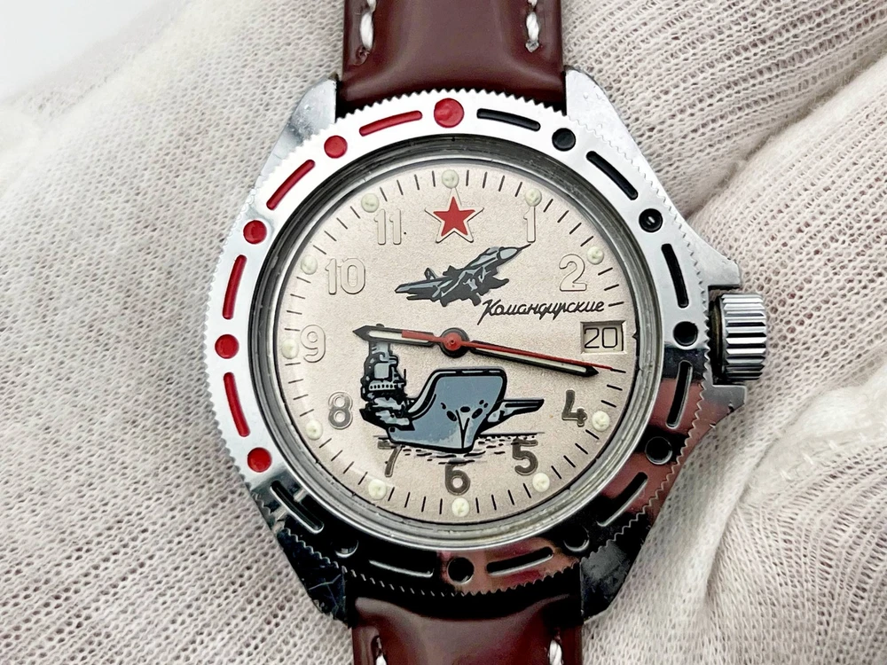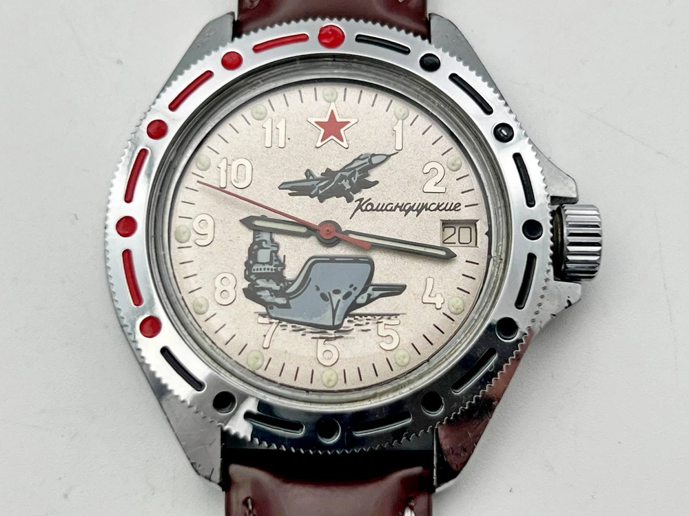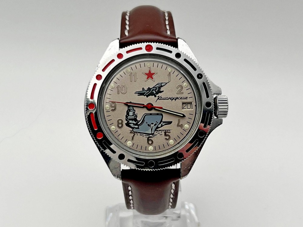 WOSTOK Komandirskie 2414A Vintage Wristwatch Vostok USSR Watch "Commander" Aircraft Carrier, Beige Dial, Calendar, Dark Brown Leather Band, luminescent Indexes. Produced by the Chistopol Watch Factory The watch is serviced by professional watchmaker. The service included complete disassembly, cleaning and subsequent lubrication of the mechanism. Keeps good time and runs well. Could be a great gift for someone you love or can be added to your collection. Contact me if any questions. I do offer combine shipping discount if you buy 2 items or more. I make shipments the next business day after the purchase. Please watch the photos carefully as they are important part of description. Thanks for your interest. Have a look at some other lots at our store. 💛💙