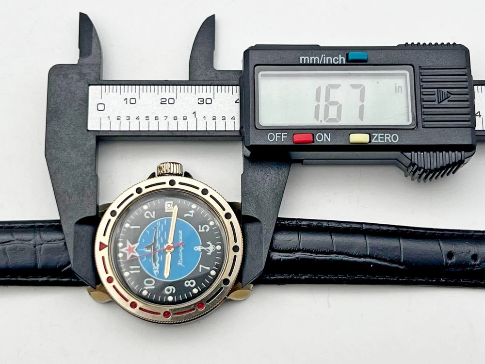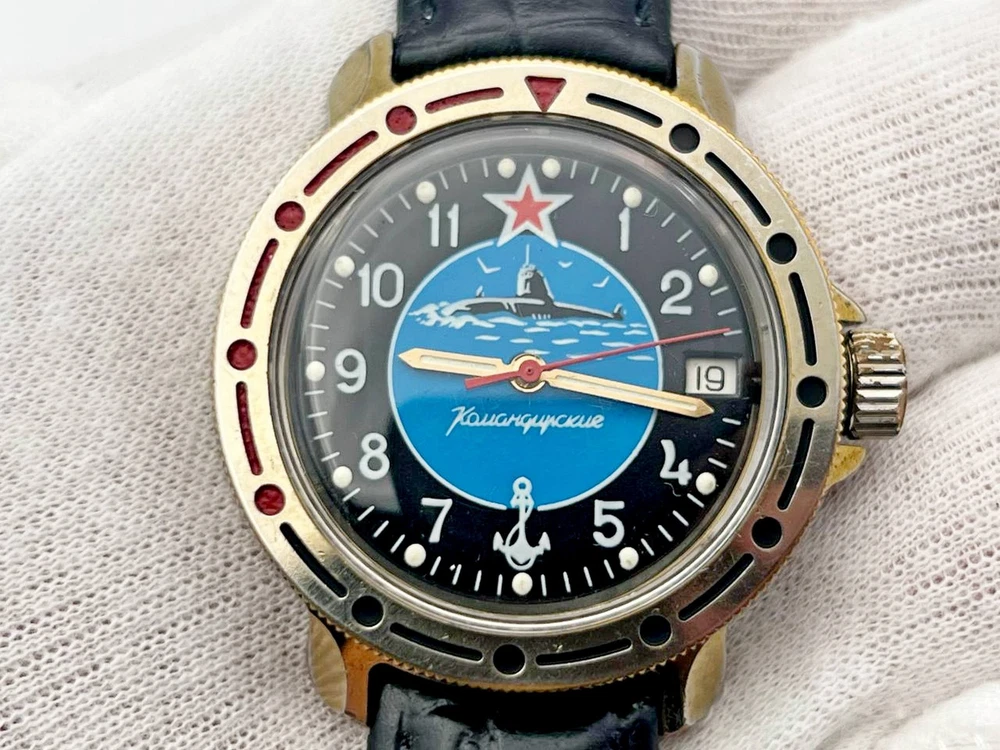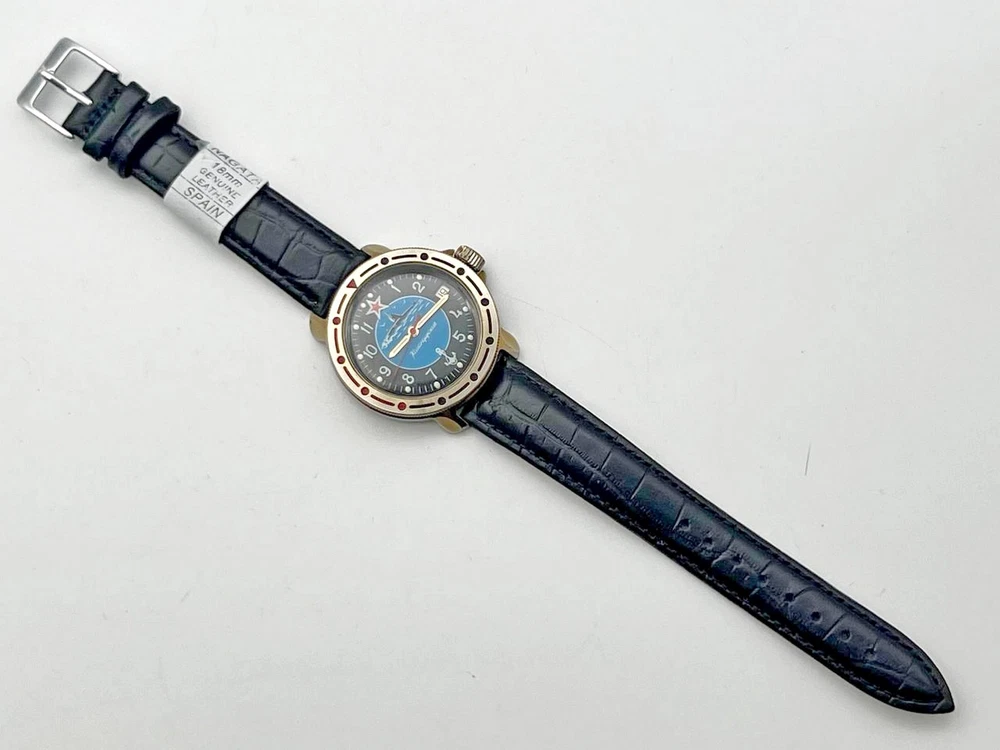 WOSTOK Komandirskie 2414A Vintage Wristwatch Vostok Post-USSR Serviced Watch Watch "Commander" Submarine, Blue-Black Dial, Calendar, Black Leather Band, luminescent Indexes. Produced by the Chistopol Watch Factory Vintage wristwatch Vostok Komandirskie, model 2414, originally designed and produced in the USSR for military and aviation use. This particular piece was manufactured after the collapse of the Soviet Union at the same factory, preserving the original Soviet design and quality. The watch has been professionally serviced and is in good working condition. Great for collectors of Soviet-era and post-USSR timepieces. Could be a great gift for someone you love or can be added to your collection. Contact me if any questions. I do offer combine shipping discount if you buy 2 items or more. I make shipments the next business day after the purchase. Please watch the photos carefully as they are important part of description. Thanks for your interest. Have a look at some other lots at our store. 💛💙