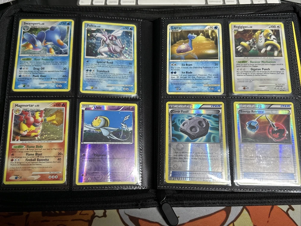 Cards range from NM-DMG. Most of the cards are going to be played. Do not purchase with the intent of grading, these are meant for binder copies. Please view the eBay card condition guidelines for further details: https://pages.ebay.com/cardconditions/ Understand that scans can have more scratches that are not as visible, so please use the labeled card condition to also determine condition. If there are any creases, indentions, or anything major on individual singles, I will always photograph them for you. Orders under $20 will be shipped with eBay standard envelope. Typically inside of a penny sleeve, toploader, team bag, inside of a cardboard envelope. Orders over $20 will be shipped USPS Ground Advantage. Typically inside of a penny sleeve, toploader, Team bag, inside of another team bag with corrugated plastic on each side, in a bubble mailer. Message me if you have any questions!