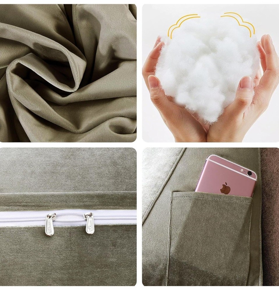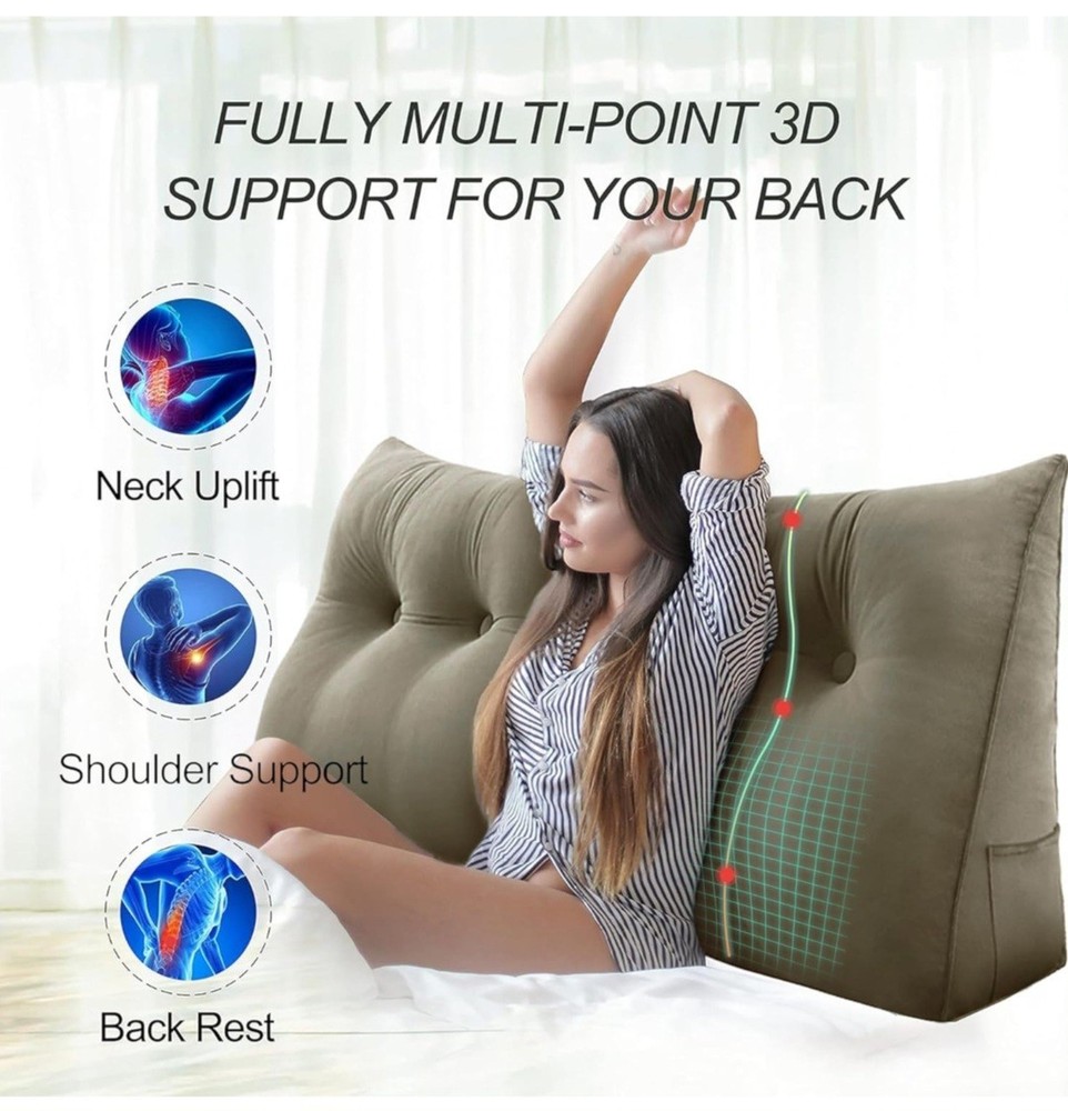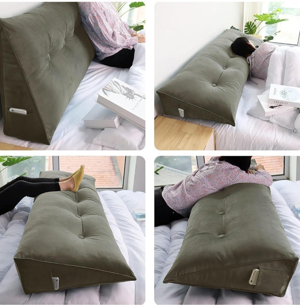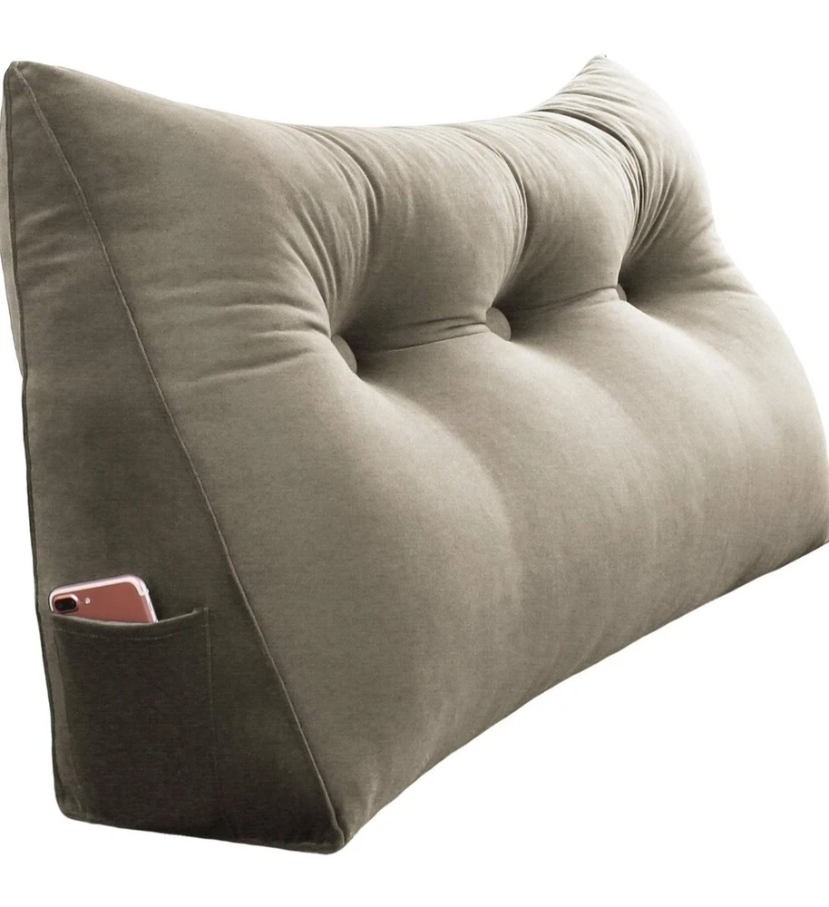 WOWMAX Triangular Headboard Pillow Twin Bed Wedge Pillow for Headboard Large Bolster Pillow for Bed Wedge Pillow Headboard Daybed Pillows with Removable Cover, Velvet (100% Cotton), Beige-Gray #85.18.25