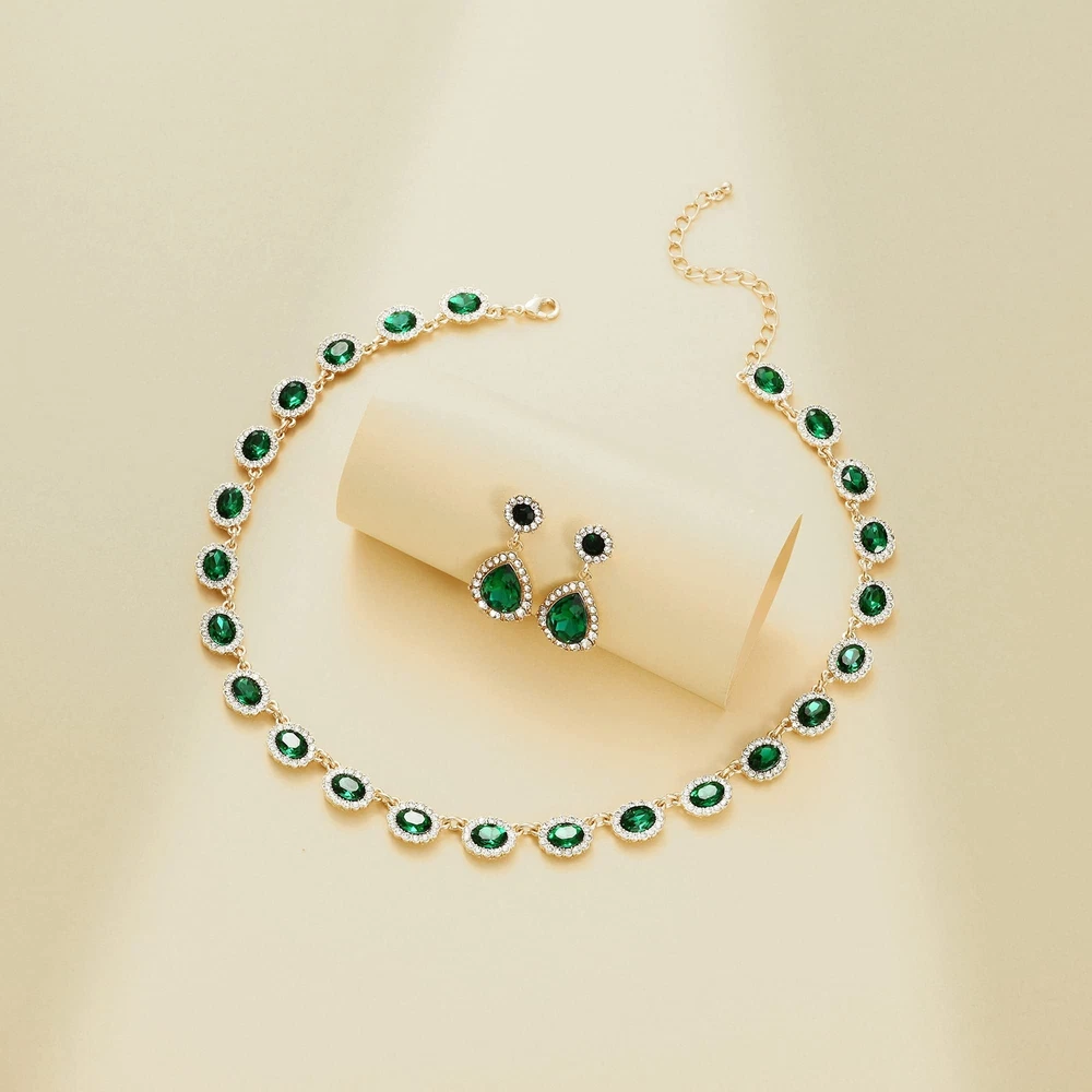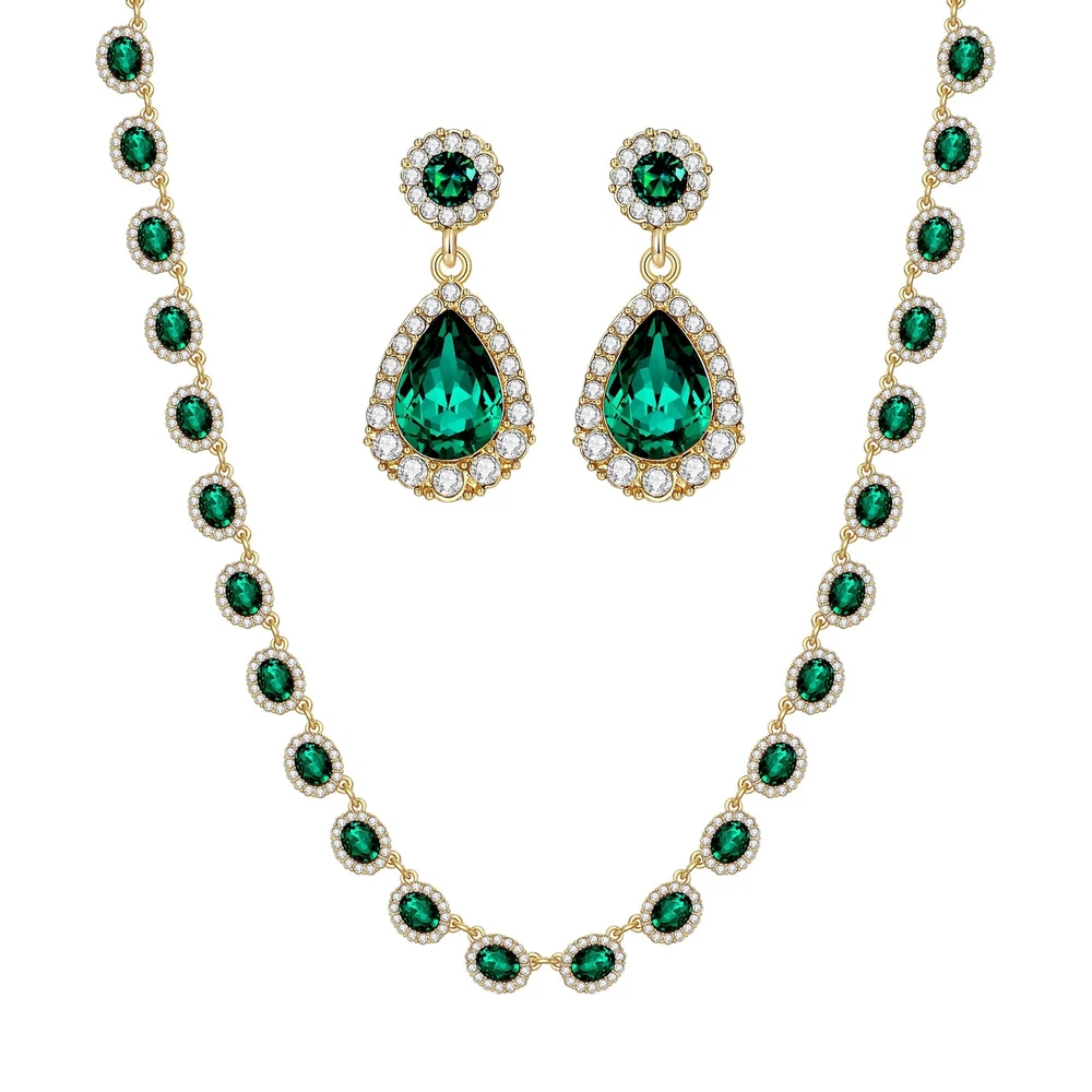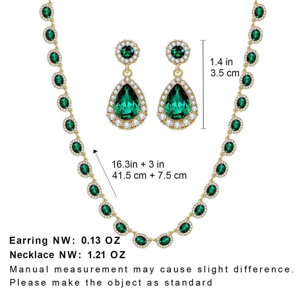 WOWORAMA Crystal Bridal Jewelry Set Statement Choker Necklace Teardrop Dangle Earrings Set Rhinestone Wedding Jewelry Set for Women Bride Bridesmaid Jewelry Party Prom Jewelry Set Product Details Color: Green Brand: WOWORAMA MPN: Does not apply UPC: Does not apply EAN: Does not apply Package Dimensions : 6 x 4.2 x 0.5 inches; 3.53 ounces Department : womens Date First Available : June 12, 2021 Brand, Seller, or Collection Name: WOWORAMA Metal: Copper Material: Copper Gem Type: Cubic Zirconia, Rhinestone Chain: Cuban Clasp: Lobster Clasp Number of stones: 3
