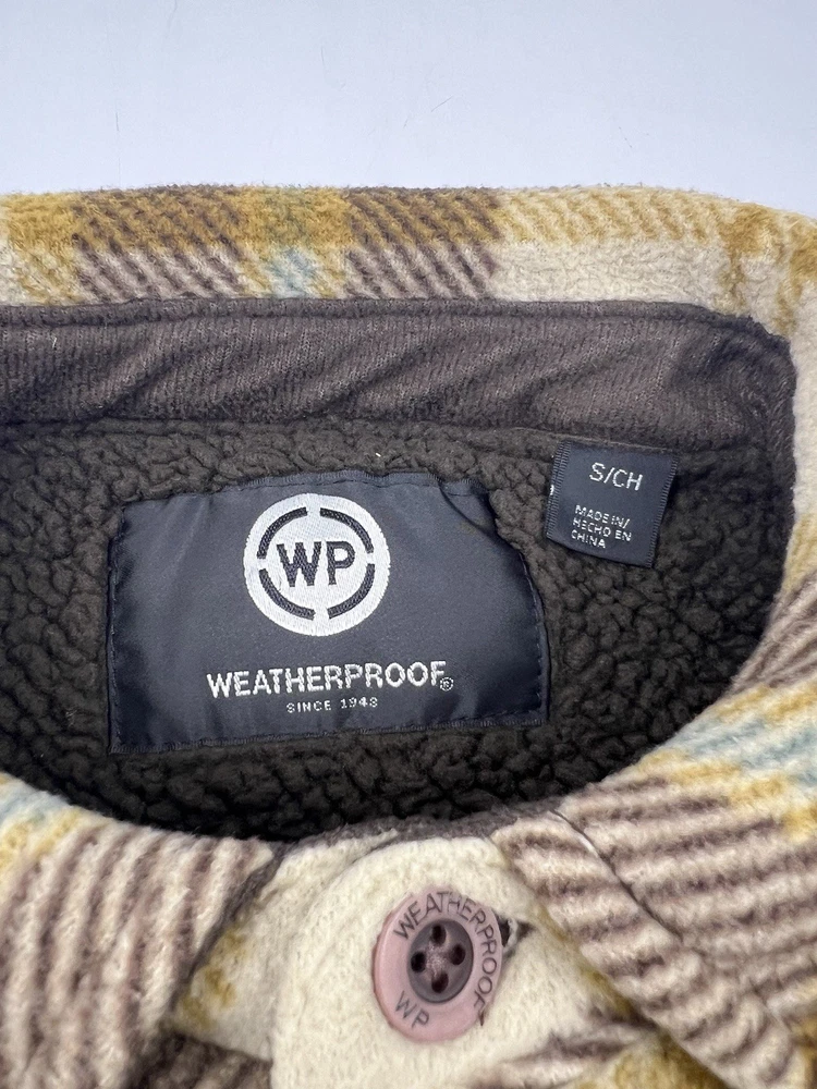 WP Weatherproof Shacket Mens S Brown Plaid Button Up Sherpa Lined Pockets