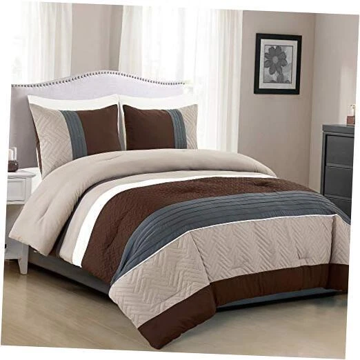 Return Policy Fast Delivery Trusted seller WPM 3 Piece Modern Design King Comforter Set. Multicolor Grey/Coffee Brown/Beige Taupe Color All Season Down Alternative Bedding Decor- Leni (King) Product Description DESIGN: Modern Multi Color Comforter will bring sleek clean modern theme to your Bedroom. Coordinate with matching Pillow Shams and complete your bed to a multi color brown beige taupe grey Theme Bed Room decor MATERIAL: Made with brushed microfiber Down Alternative Comforter is Soft Light Weight and is not too warm ideal for All Season All Year Use. Decorate your Home with this Sleek Stylish Modern Bedding SIZE: Comes in 3 sizes for you to choose from- Twin, Queen or King Premium Quality Comfort: The comforter is designed for a restful night's sleep. It's crafted from high-quality, soft, and durable materials, ensuring that you're wrapped in comfort while you slumber. This high-quality bed set is good for any home, farmhouse, ranch home modern theme Bedroom. Made in OEKO-TEX Standard 100 factory, an independent certification system that stands for customer confidence by ensuring textiles are tested for harmful substances and meets high product safety and environmental standards. King Size Comforter is 104 Inch Wide x 90 Inch Long + 2 Pillow Shams 20 x 36 inch Machine wash using cold water, delicate cycle with no bleach. Tumble Dry on low or air dry Shipping Returns Payment Shipping Shipping is FREE to all addresses other than APO/PO boxes in the lower 48 states. All our stock ships from US-based warehouses. Shipped via USPS or UPS (depending on location and package weight) Unless stated otherwise, all orders will ship within 24-72 hours of your payment being processed. Check our feedback to see the great reviews of FAST shipping we offer. Returns Seller does not accept returns Payment We currently accept payment via eBay managed payments only. Once payment is cleared, we will dispatch your shipment within 1-3 business days. Please refer to the "Shipping" tab for more information regarding shipping speed to your destination.