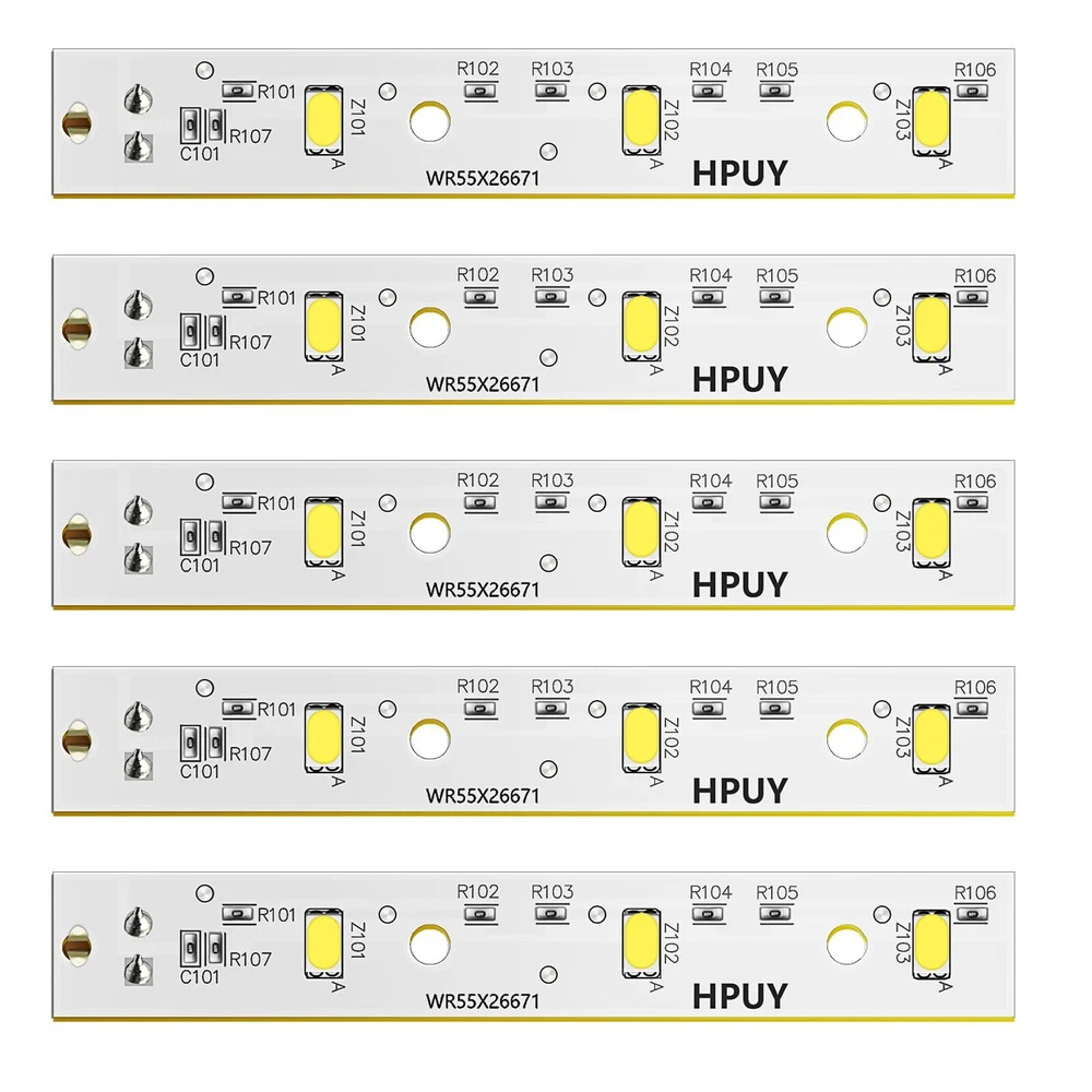 Important Tip:Please Check picture of your Refrigerators LED Light Board, or check your Refrigerators model whether it is in Compatible Model list. If your refrigerator LED lights flicker, dim or don't illuminate then you could order LED light Board, include 5PCS WR55X26671 without plastic cover,you could easily install into your original housing Replace Part Numbers:WR55X26671 LED light could replace PS11767930 AP532 EAP11767930 GE refrigerator LED light Board Premium Quality and Center Reinforcement Design:The WR55X26671 freezer light bulb use 2W LED and apply for waterproof treatment to make your refrigerator light work better than others. At the same time, aiming at the problem that the center part is easy to crush, the design of the product has been improved with a reinforced washer added at the center position to make the product more durable and have long-term use Fit Models:The WR55X26671 compatible for GE refrigerator GSE23GGKJCBB LED light, foe GE refrigerator GSE23GGKJCCC LED light Board,GE GSE23GGKJCWW GSE23GGKKCBB GSE23GGKKCCC GSE23GGKKCWW GSE23GGKNCBB GSE23GGKPCBB GSE23GGKPCCC GSE23GGKPCWW GSE23GGKRCBB GSE23GGKRCCC GSE23GGKRCWW GSE23GSKJCSS GSE23GSKKCSS GSE23GSKPCSS GSE23GSKRCSS GSE25GGHJCBB GSE25GGHJCCC GSE25GGHJCWW GSE25GGHKCBB GSE25GGHKCCC GSE25GGHKCWW GSE25GGHRCCC GSE25GGHRCWW GSE25GSHJCSS light Board After sales:If you encounter any problems during use, please contact for timely assistance. Customer satisfaction is our top priority